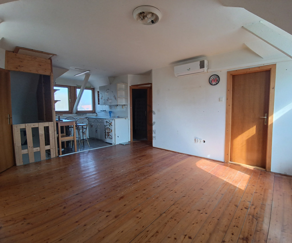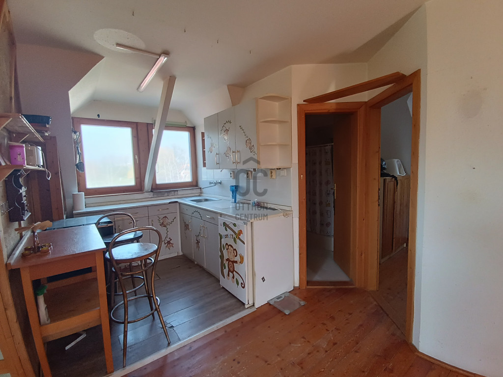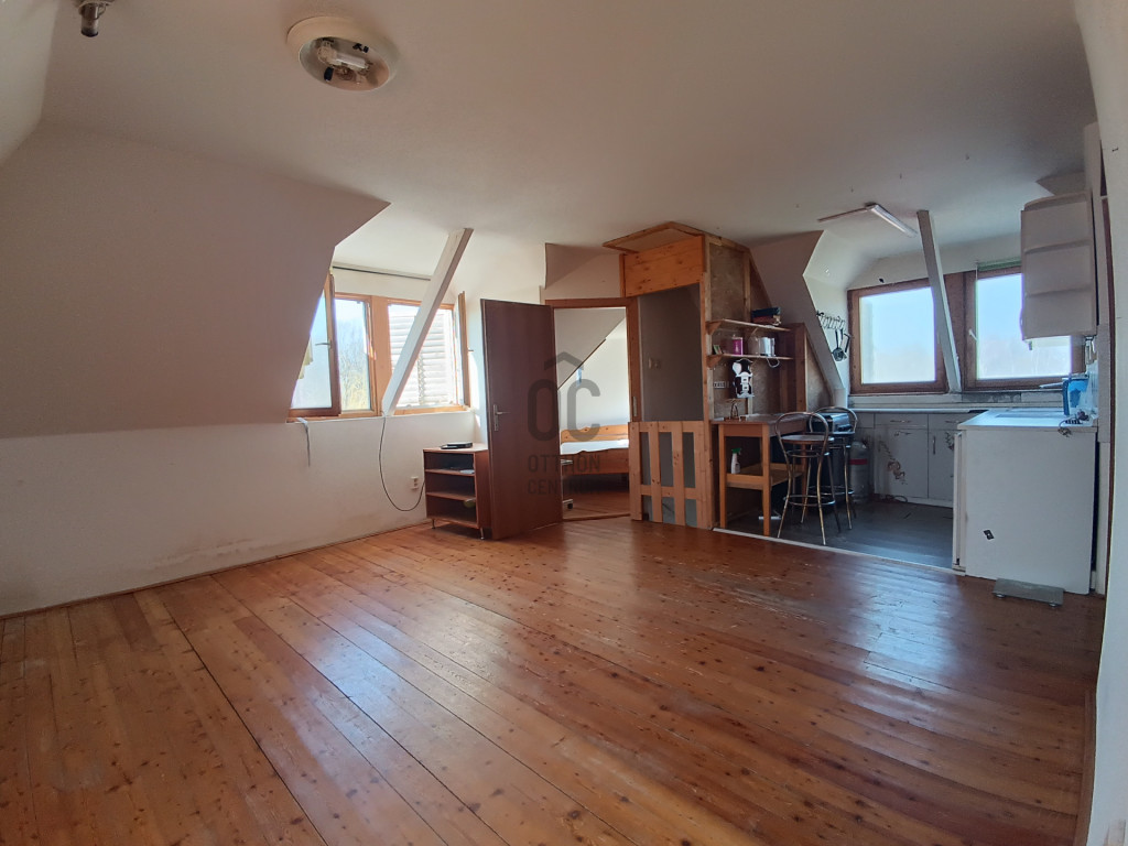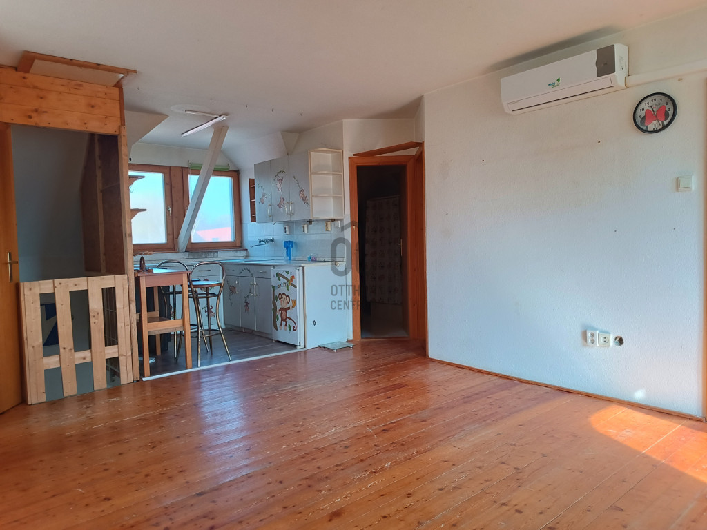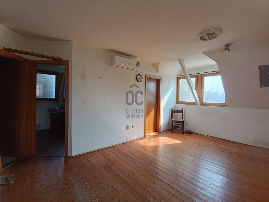 - Tetőtérben: lakrész, felújítást igényel, klímával felszerelt