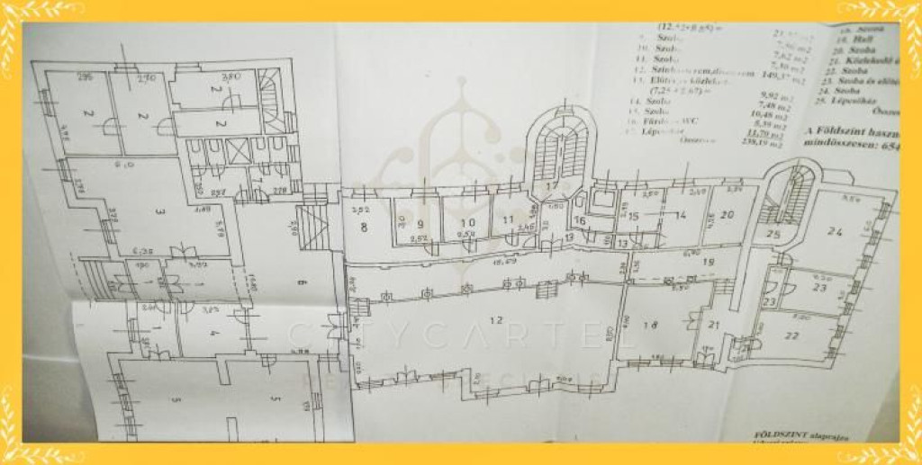A szobák nagy része önálló fürdőszobával és wc-vel rendelkezik. A földszinten impozáns, 150 nm-es, felújítandó, kertkapcsolatos díszterem található. A ház kívülről fel van újítva.