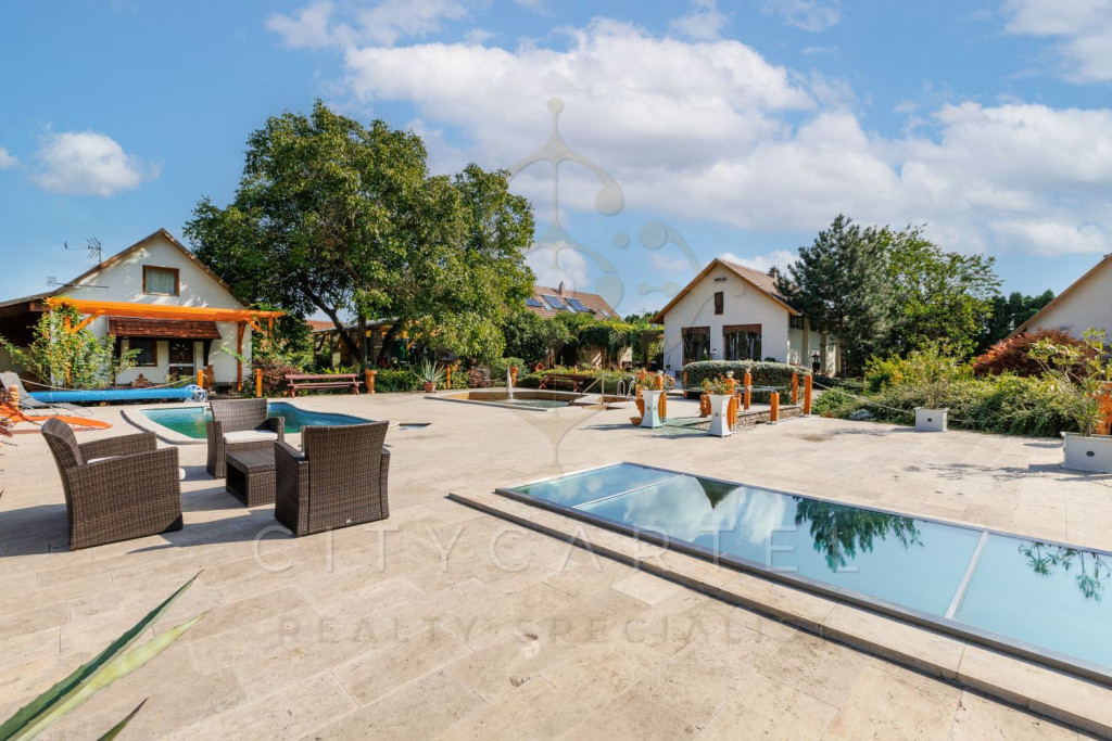 A 14 116 nm-es, parkosított telken egy összesen 511 nm alapterületű ingatlankomplexum helyezkedik el, amely egy főépületből és három önálló vendégházból áll. Az épületek kialakítása átgondolt, funkcionális, ugyanakkor kifejezetten hangulatos és intim, tökéletesen illeszkedik a természet nyugalmához.