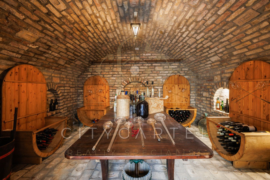 A főépület klimatizált, tágas belső terekkel, ideális akár nagyobb család, akár vendégek fogadására.
