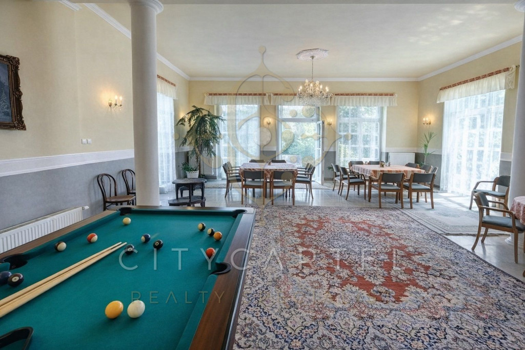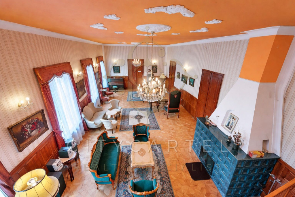 A földszint 4,2 méteres belmagassága különösen elegáns térélményt biztosít. A kandallóval díszített könyvtárterem, valamint a korhű berendezésekkel kialakított télikert valódi történelmi atmoszférát teremt, amely a vendégélmény szempontjából kiemelkedő, ugyanakkor reprezentatív magánhasználat esetén is páratlan.