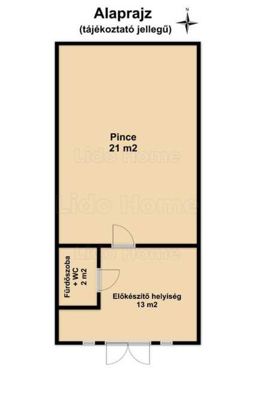 A boltíves pince 21 m2 nagyságú, az előkészítő helyiség 13 m2, melyet szobaként és konyhaként használtak. Kialakítottak belőle egy 2 m2-es zuhanyzó-WC-t is, így nyaralásra kiválóan alkalmassá vált. Festett falak, járólapozott padló, a pince aljzata beton. Egy féltetős kerti kiülő teszi "otthonossá". A pince helyiség közösségi együttlétek, családi rendezvények színhelye is lehet.