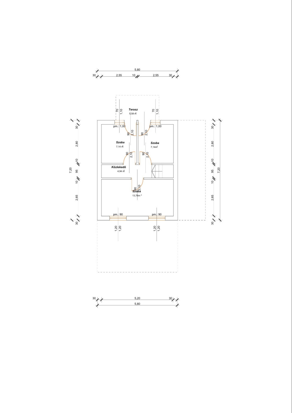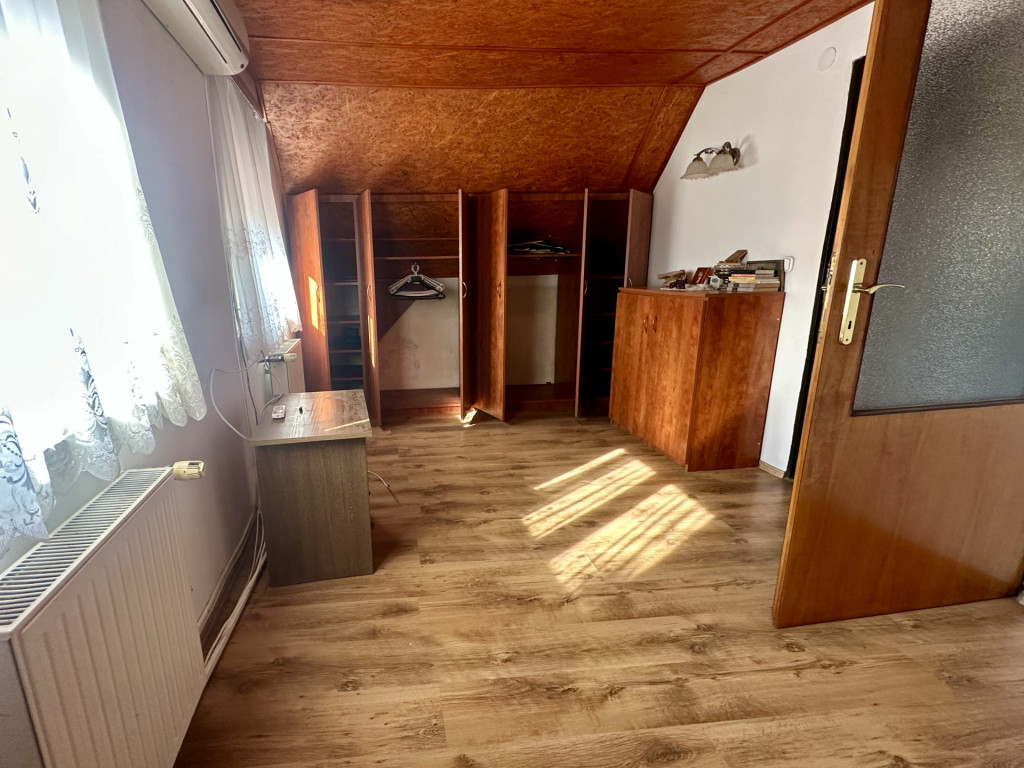 Tetőtérben: 3 hálószoba (1 nagyobb + 2 kisebb).