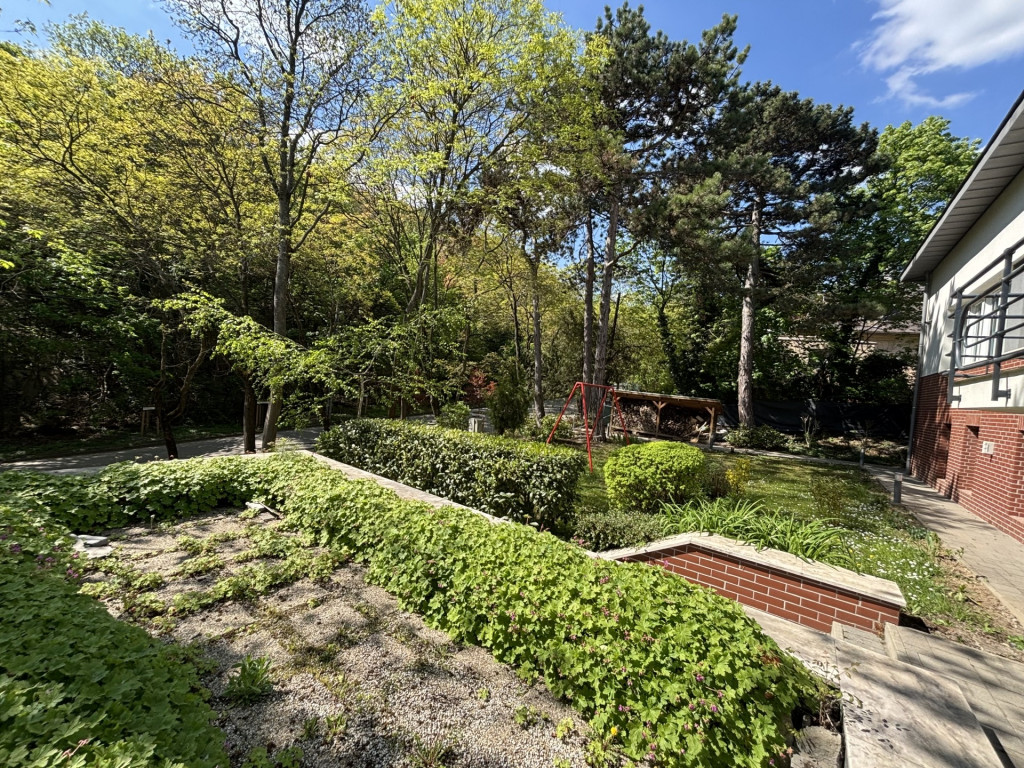 A XII. kerületben, exkluzív környezetben egy 2 szintes, 200 m2-es, a felső szinten 3 hálószobával, az alsó szinten külön bejáratú lakrésszel rendelkező, NAPFÉNYES, DUPLA ERKÉLYES, duplakomfortos BAUHAUS stílusú VILLA kiadó.A házhoz 800 m2 kert + különálló GARÁZS tartozik.