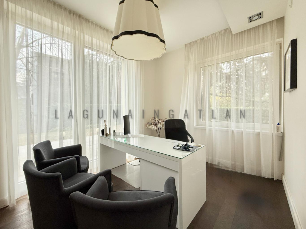 Autóval és tömegközlekedéssel is közvetlenül elérhető, kisebb bevásárlóközpont közelében található, saját kertes, 2015-ben épült, modern formavilágú és műszakilag is újszerű önálló épület kiadó cégközpontnak, szolgáltatóháznak, egészségügyi központnak vagy akár rezidenciának is megfelelő adottságokkal.
