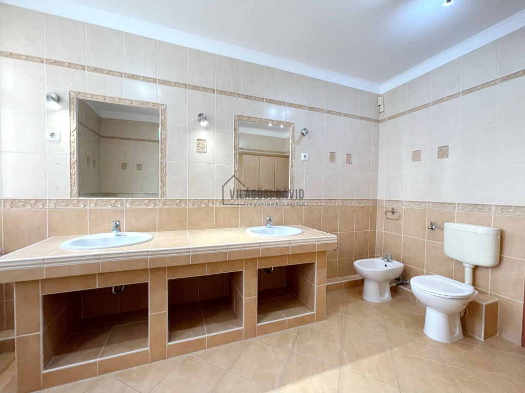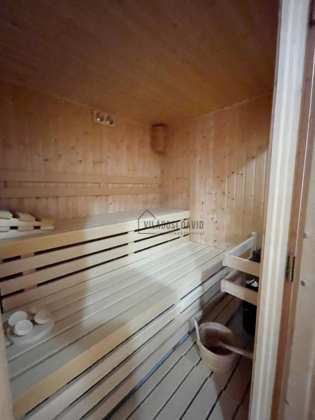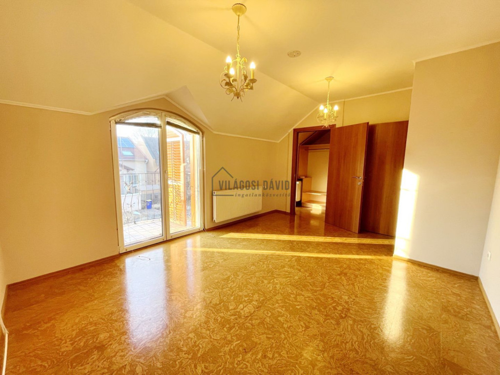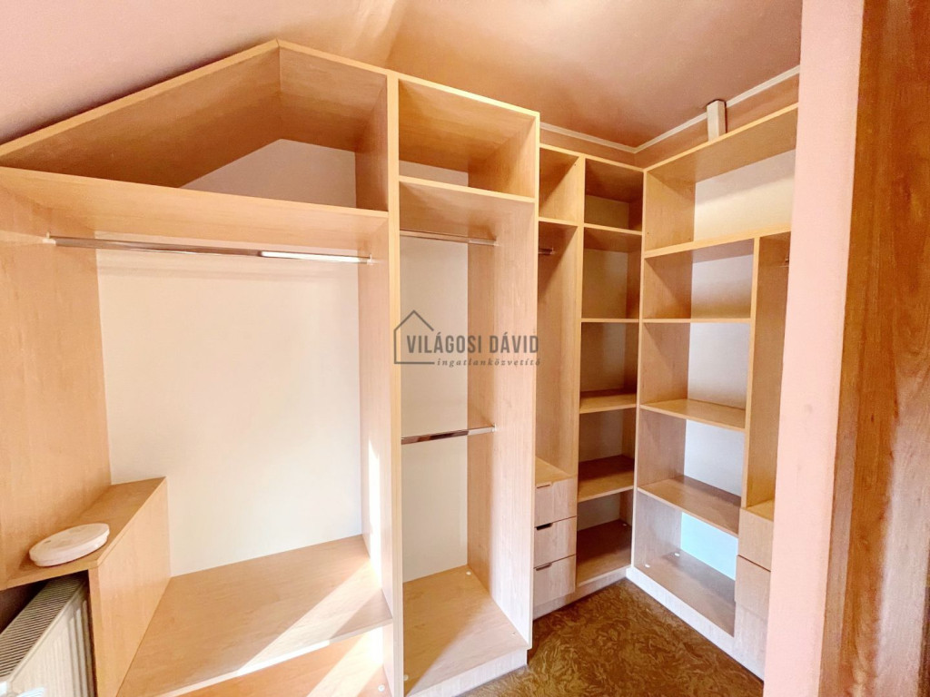 Emelet: 3 hálószoba + gardrób, 1-es fürdőszoba (káddal)+ WC/bidé, 2-es fürdőszoba (zuhanyzó) + WC, szauna,