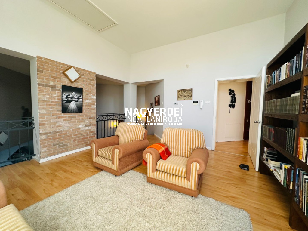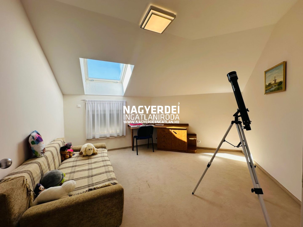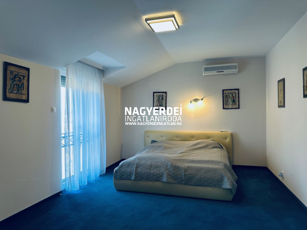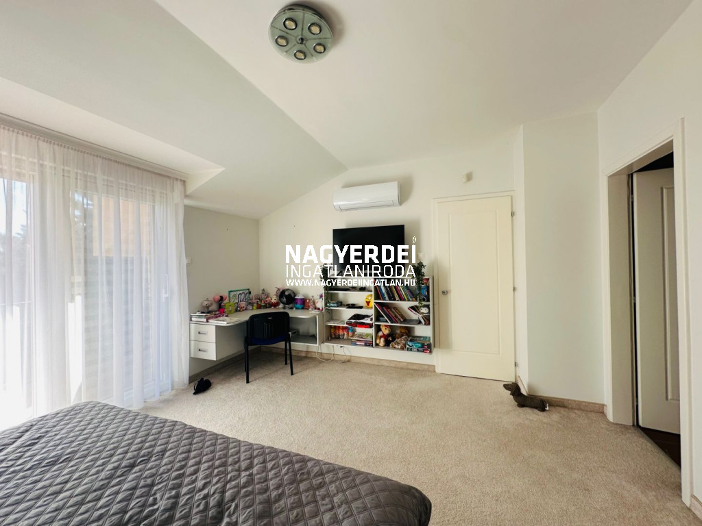 Az emeleten társalgó, erkély, 4 külön nyíló szoba, kettő szobához külön fürdőszoba és gardróbszoba is tartozik.