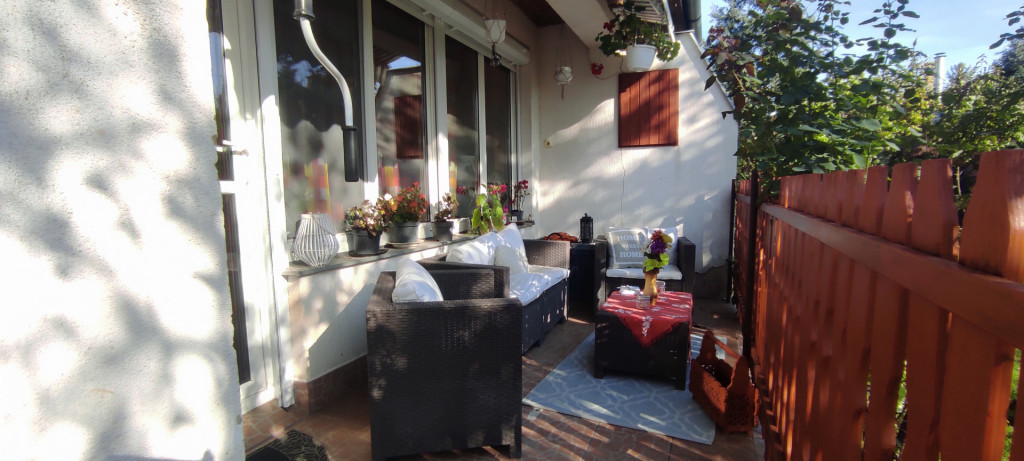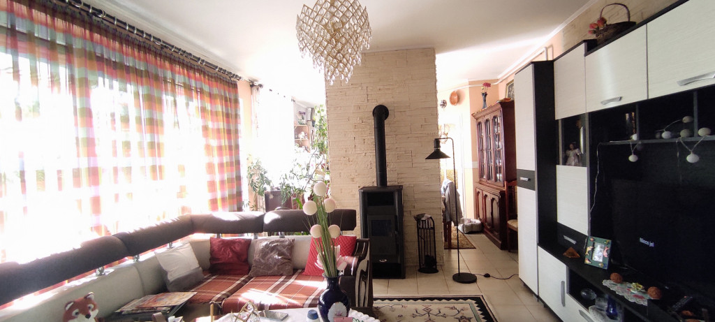 - Műanyag nyílászárók redőnnyel, padló fűtés, a hálókban radiátoros fűtés jellemzi, a nappaliban kandallóval.