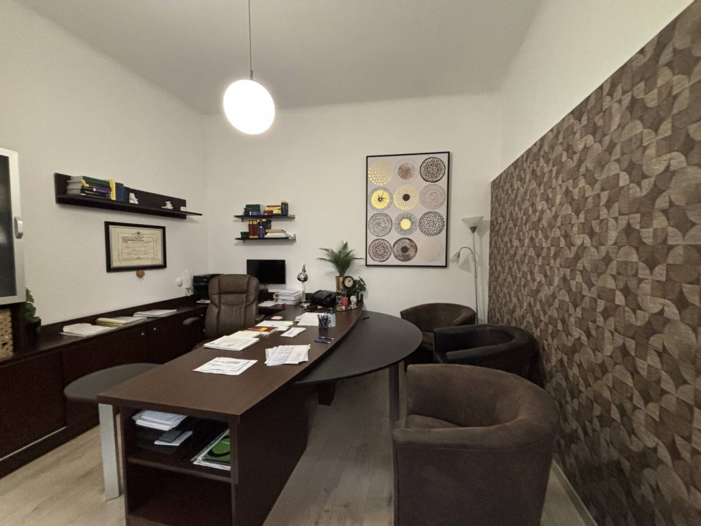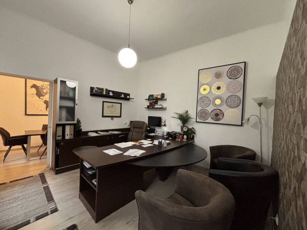 Az iroda három különálló helyiségből áll, melyek váróként, tárgyalóként és fő irodahelyiségként funkcionálnak, emellett konyha, valamint zuhanyzóval ellátott mosdó is rendelkezésre áll. A gázcirkó fűtés biztosítja az ingatlan komfortos használatát. A felújított állapot és a modern, esztétikus berendezés reprezentatív megjelenést nyújt, amely kiválóan alkalmas ügyfélfogadásra.