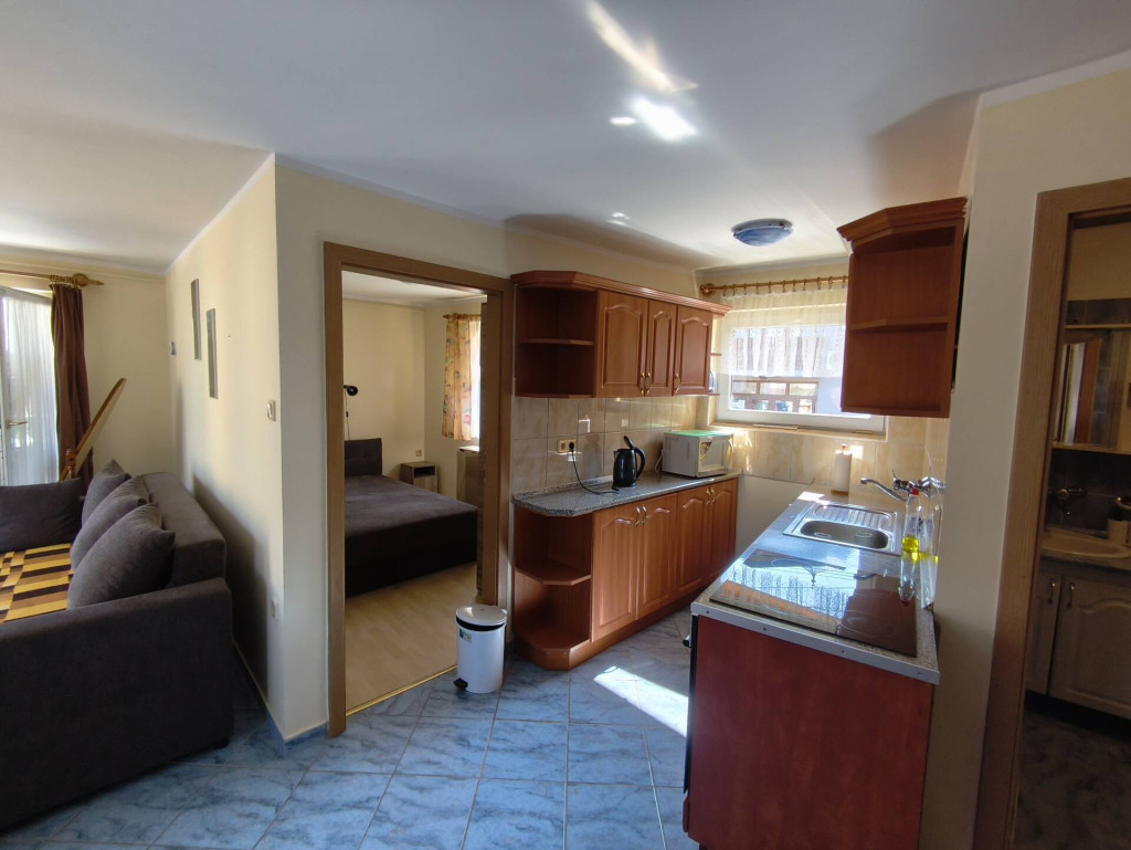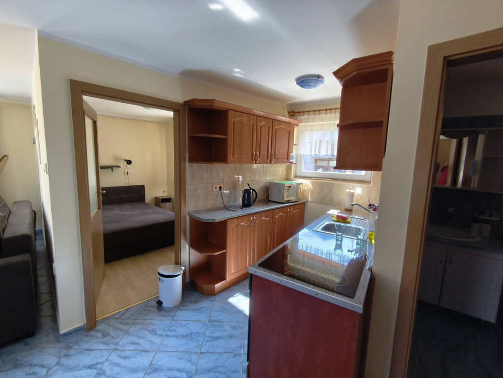 • Elosztás: 1 hálószoba, tágas konyha-étkező-nappali, fürdőszoba.
