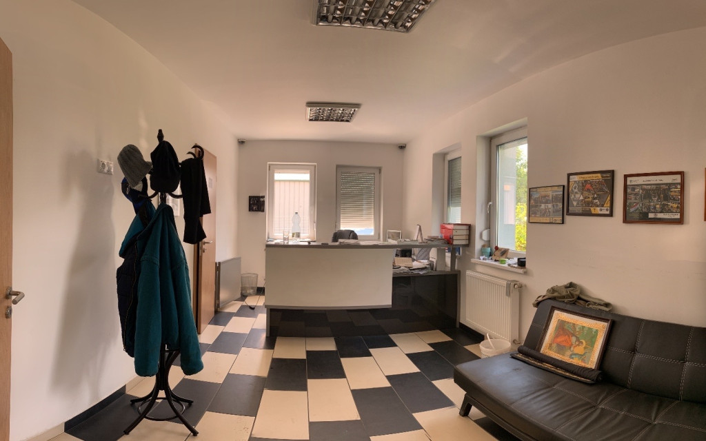 A 2014-ben épült felépítmény iroda fejépülete 38-as téglaszerkezetből, 15cm-es szigeteléssel, 3 rétegű nyílászárókkal épült. Mind az iroda, mind a szociális felületek a mai kor igényeinek megfelelnek és megfelelő méretűek a csarnoképület kiszolgálásához. (alapterület kimutatás a fotók között).