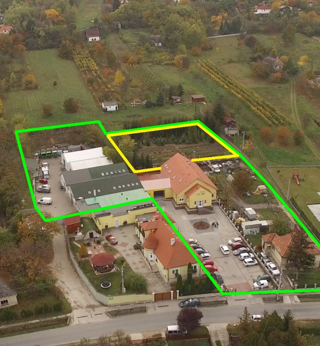Az eladásra / bérbeadásra kínált ingatlan lakóövezetben helyezkedik el. A 7.486 m2-es földterület három helyrajzi szám alatt van nyilvántartva. Az egyiken ami 5533 m2, helyezkednek el az alábbiakban részletezett felépítmények. A másik 1328 m2-es, közművesített lakóház építésére alkalmas telek, vagy akár a felépítmények jövőbeni bővítésének adhat helyet. A harmadik pedig az üzem megközelítését szolgálja.
