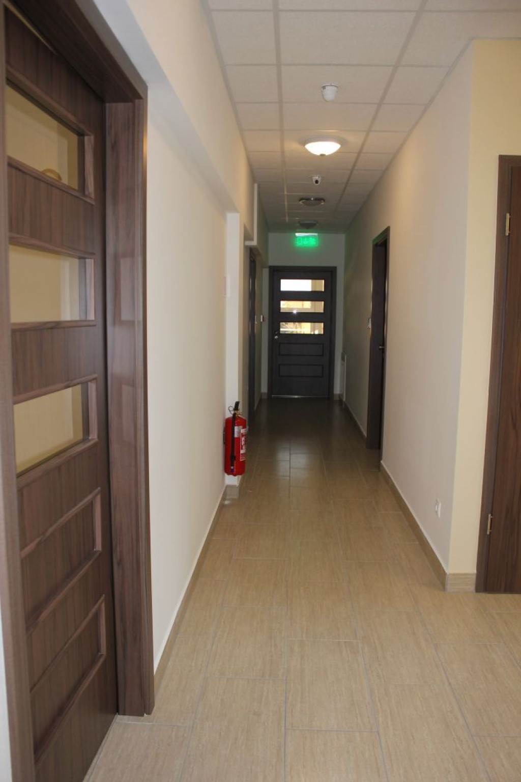 A két szintes ~462 m2 hasznos alapterülettel rendelkező iroda épület, sáv alapra, 30-as tégla falszerkezettel, monolit vasbetongerendás födémmel épült, a homlokzati szigetelés 15 cm-es grafitos Dryvit rendszer, a nyílászárók műanyagból készültek. Az irodaépület földszintjén a recepcoión és a wc és modókon kívül három "normál" méretű, és nagy nagy méretű iroda helyezkedik el. Az alaprajzok és a helyiséglista a fotók között megtalálható. Az emelti részen találhatók az üzemi rész öltözői, zuhanyzói, a kazánház és a konyha-étkező, ami nagyobb meetingek, bemutatók tartására is alkalmas.