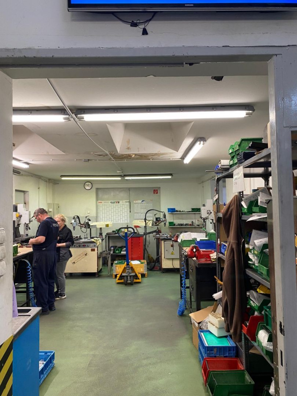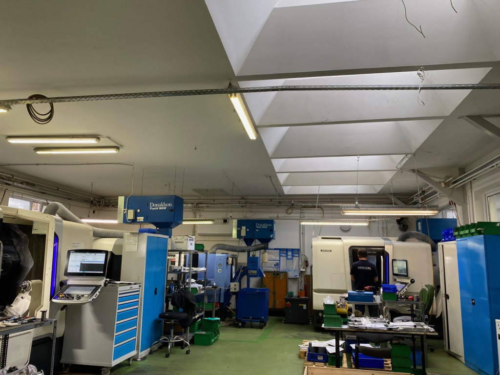 Az üzemcsarnok szintén vasbeton sávalapra épült, acél tartószerkezettel, 60 mm-es hőszigetelt szendvicspanellel, ami homlokzaton és a tetőn található.