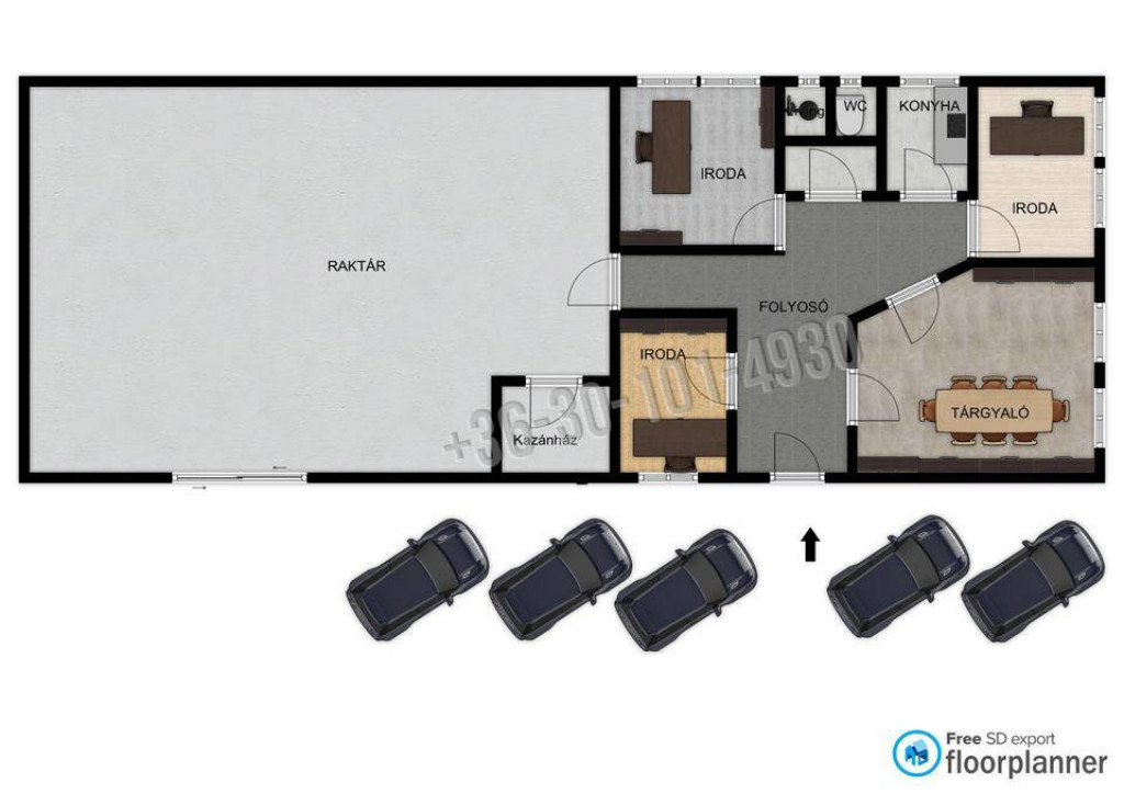 - Raktár alapterület: 240 m²