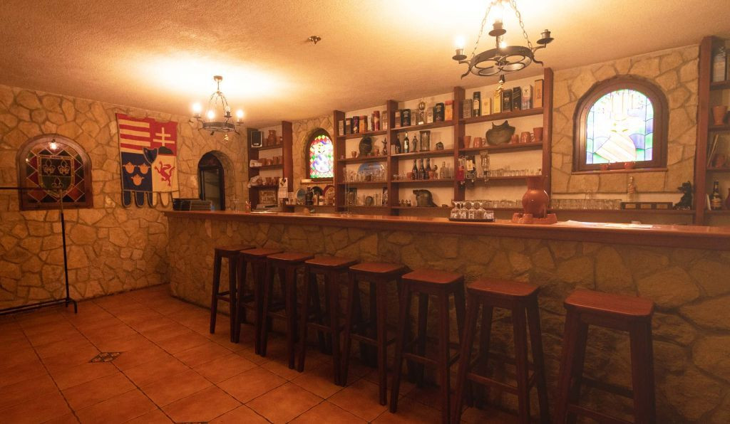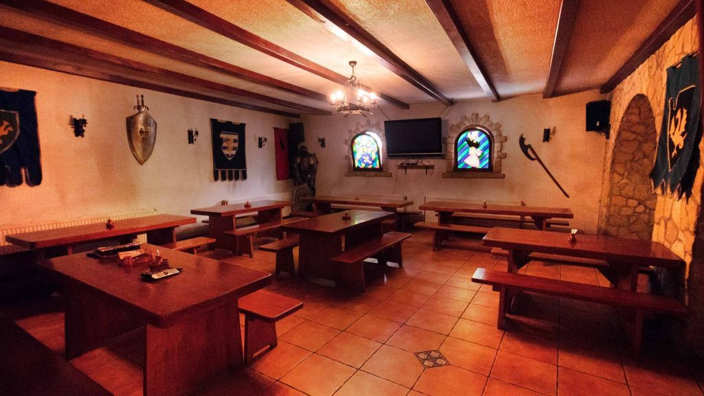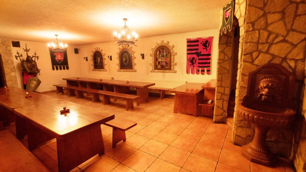 - az alsó szinten egy 80-100 főt befogadni képes étterem és egy pub is található, illetve az ezt kiszolgáló üzemi konyha