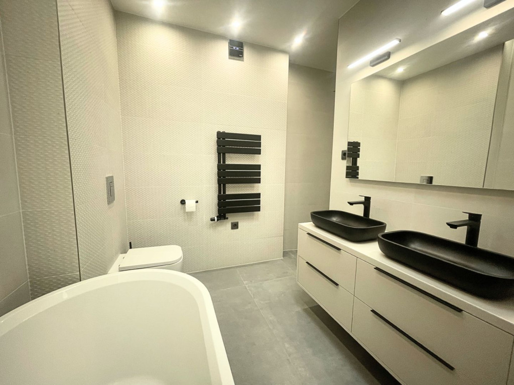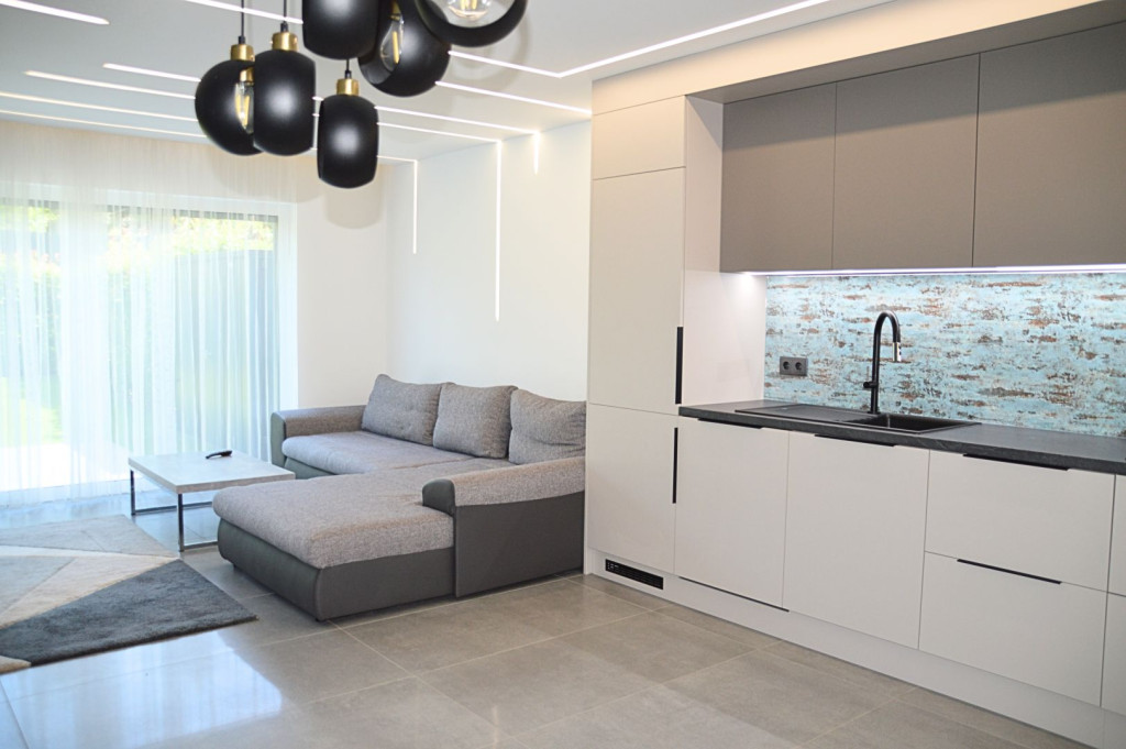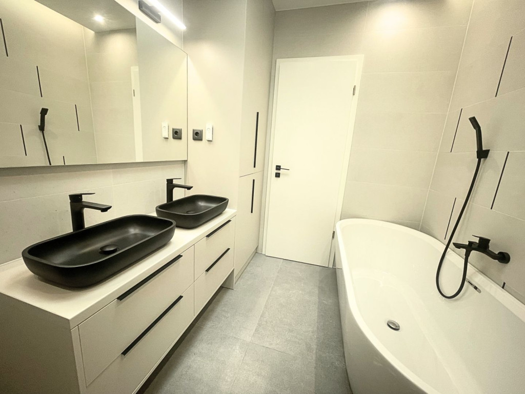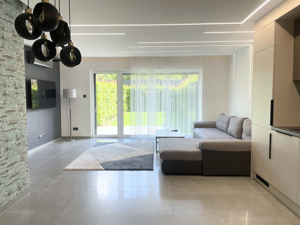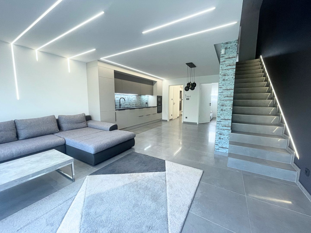 Az ingatlan 100 m² lakóterülettel rendelkezik, rendkívül praktikus és kényelmes belső elosztással. A tágas, napfényes nappalihoz amerikai konyha kapcsolódik, mely gépesített, minőségi konyhai berendezésekkel és sok tárolóhellyel felszerelt. A három hálószoba lehetőséget biztosít akár családos bérlők, akár home office-ban dolgozók számára.