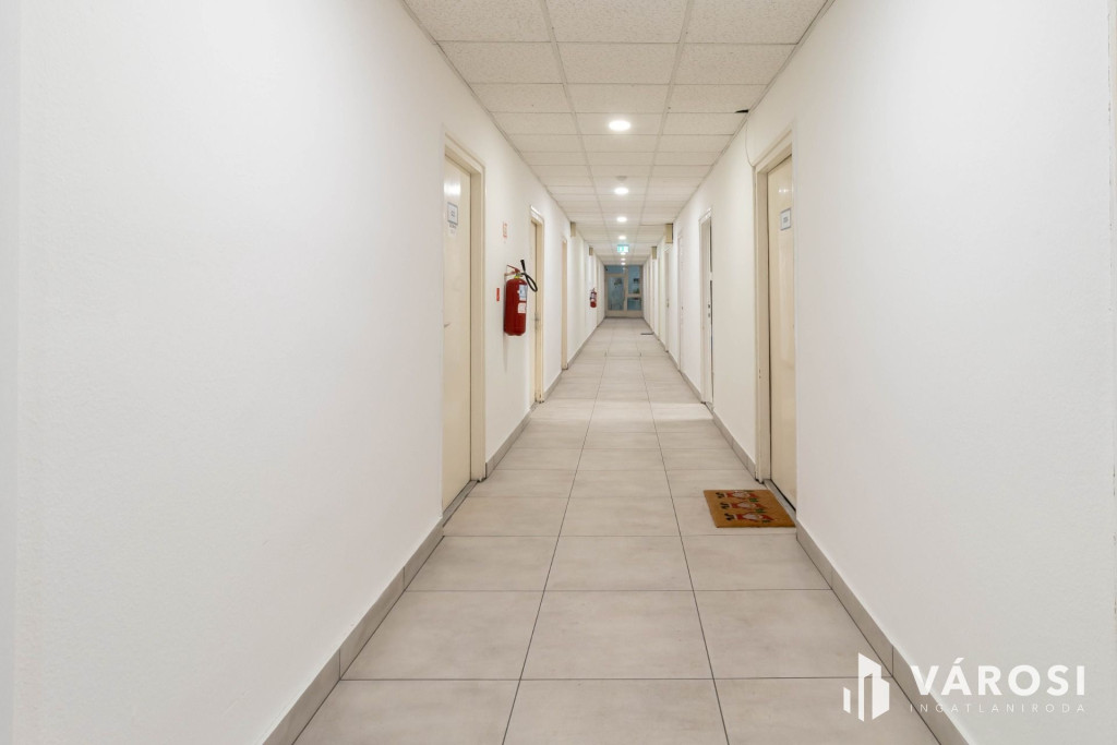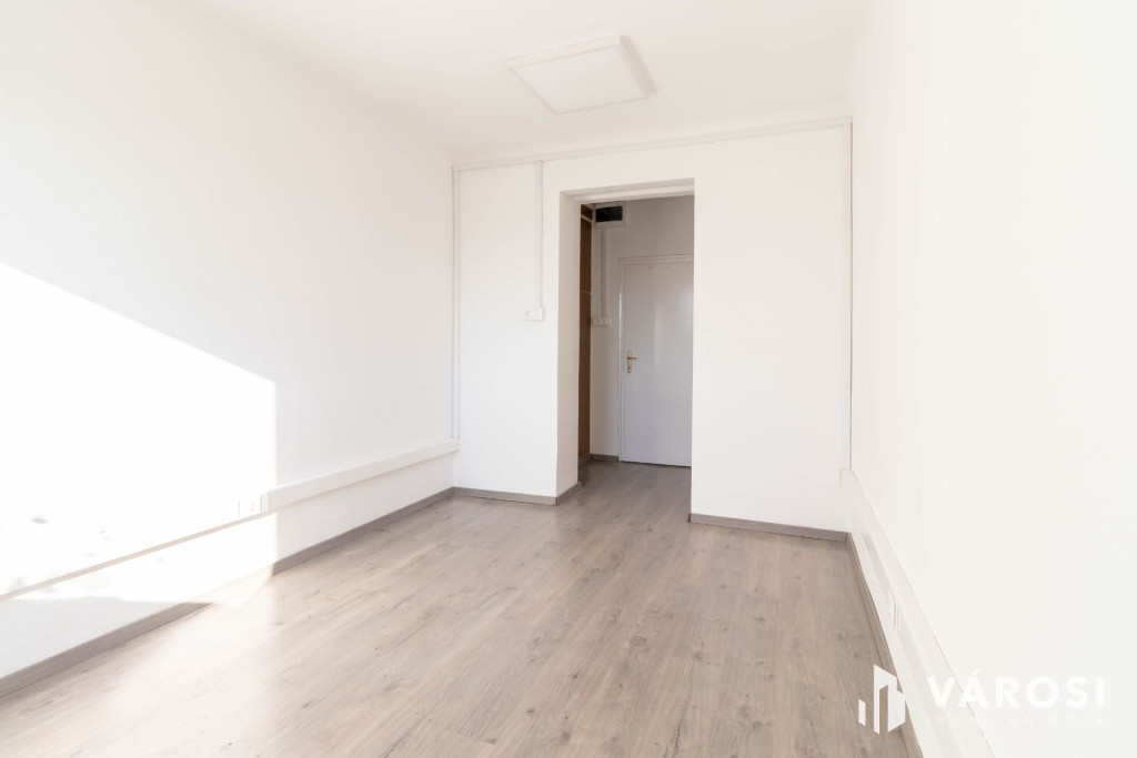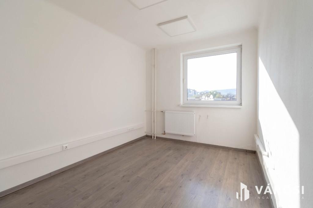 A 16 m2-es iroda az irodaház 2. emeletén helyezkedik el. A helyiség laminált padlóval burkolt.