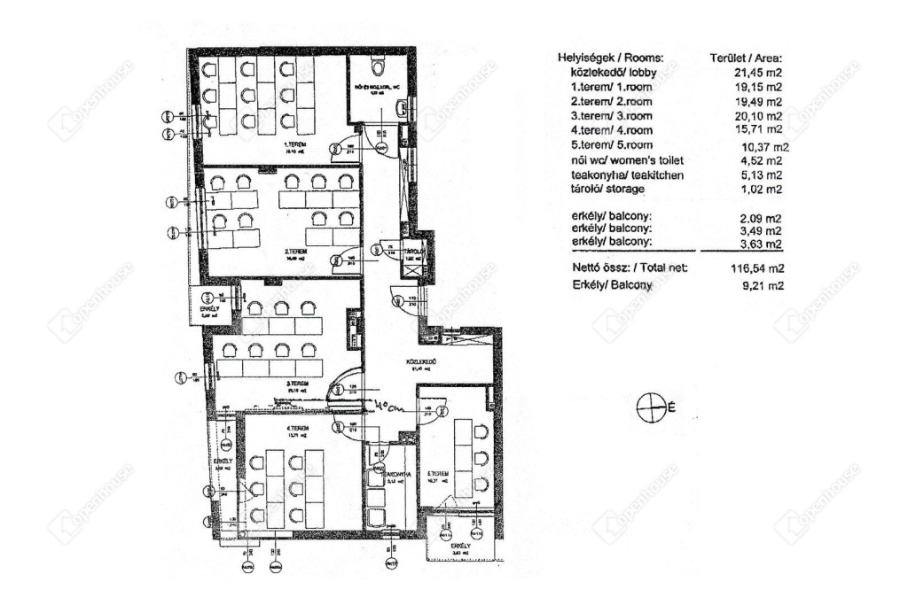 - a helyiségben több iroda, teakonyha, mosdó, wc, és tárgyaló is található, melyek egymástól elkülönülten helyezkednek el