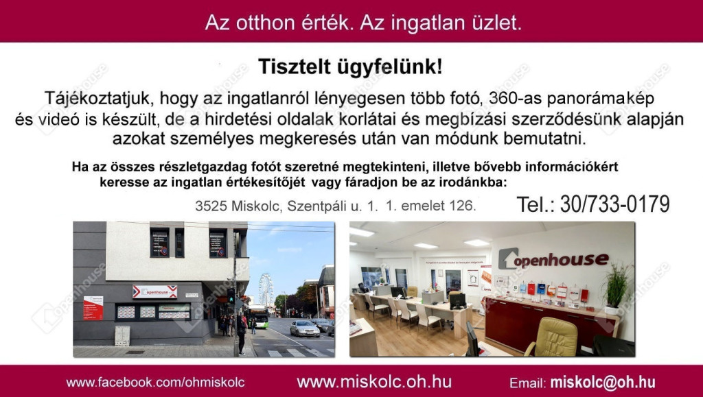 - Miskolc belvárosában, frekventált de csendes helyen található, 50 méterre a villamostól