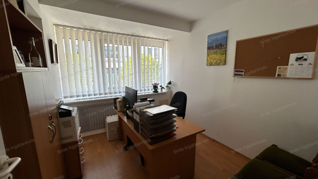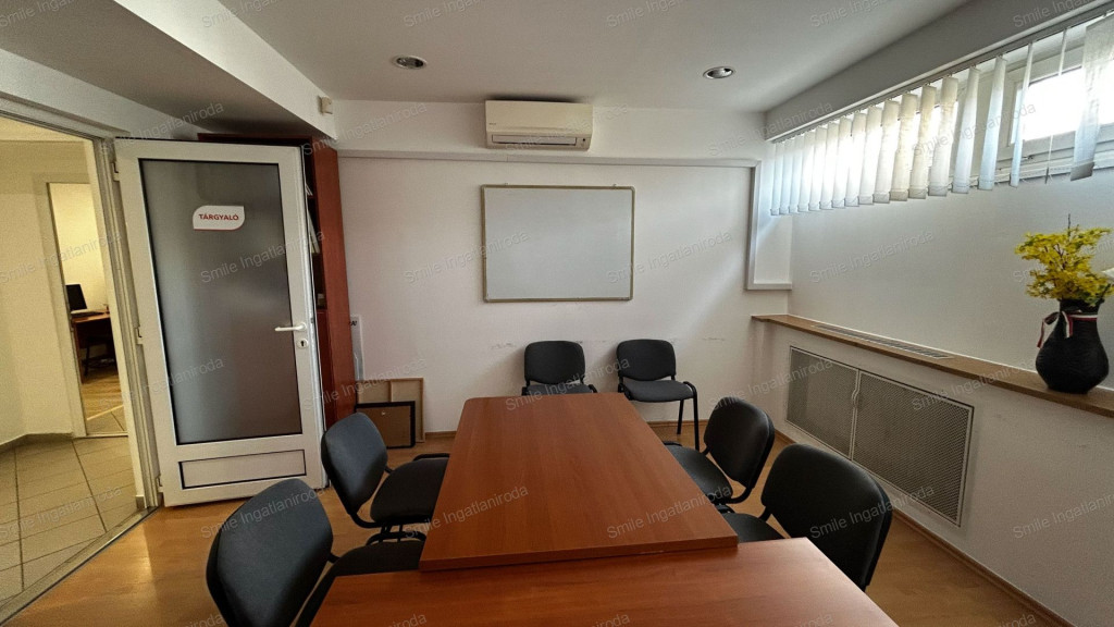 Nyíregyháza abszolút belvárosában 4 emeletes C kategóriás irodaház félemeletén cca: 191 m2-es, több helyiségből álló iroda egyedi (gáz-cirkó) fűtési rendszerrel, saját szociális blokkal, teakonyhával, klímával, hosszabb távra kiadó. A bérleti díj nem tartalmazza a rezsiköltségeket , a parkolás az irodaház udvarán kialakított parkolóban egyedi megállapdás alapján bérleti díj ellenében vagy az utcán fizetés ellenében lehetséges.Helyiségek
