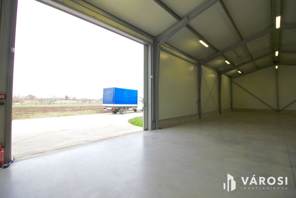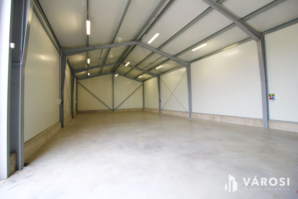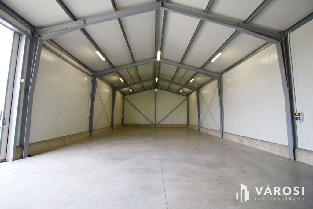 Kiadó 170,00 m2 alapterületű raktár csarnok. Az aljzat glettelt ipari betonpadló, fal-, tetőszerkezet hőszigetelt szendvics panel acélkeret tartószerkezeten, beton lábazattal. Tolókapu mérete 5,00 x 4,3 m, a csarnok belmagassága: 4,90 m - 6,15 m.A telephely kerítéssel körbevett és vagyon védelmi rendszerrel védett, a zárt udvaron a parkolás megoldható.