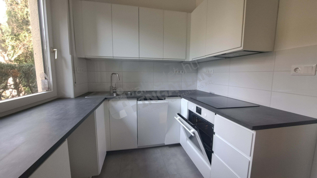 - 8 nm-es ablakos konyha, nappali étkezőrészéhez zárható átadóablakkal,