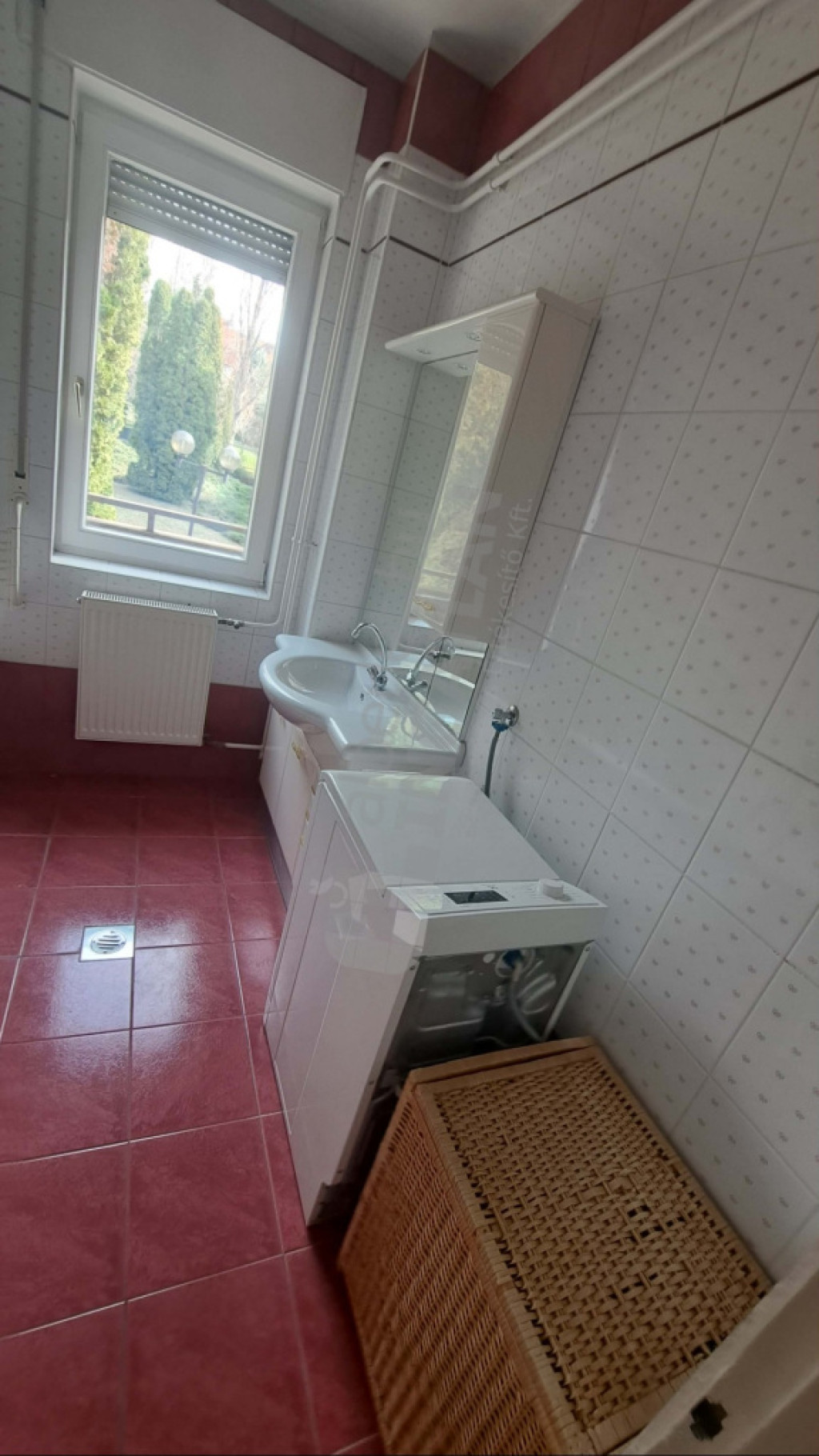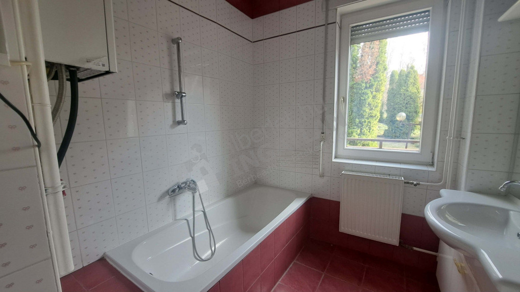 - 5 nm-es ablakos fürdőszoba kádas, mosdóval és mosógéppel
