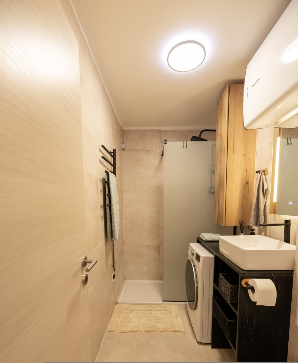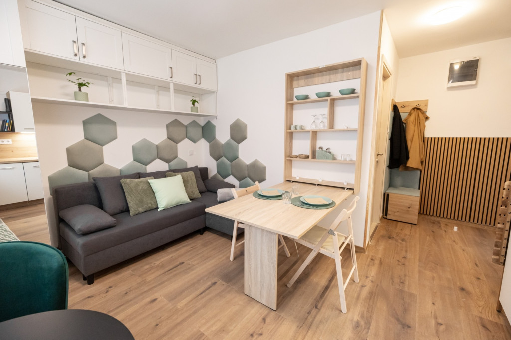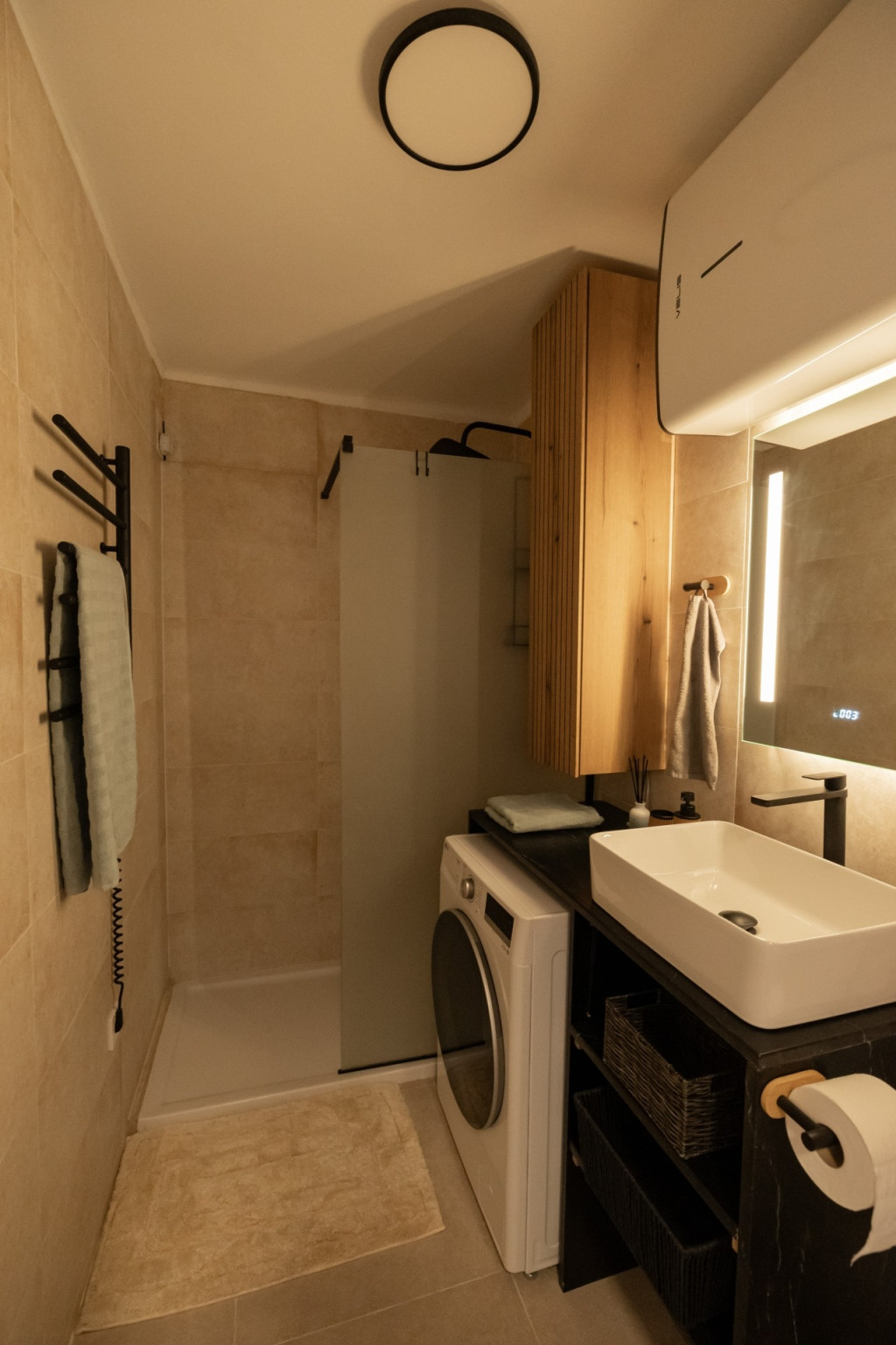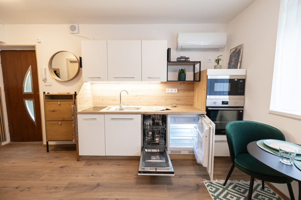 Hűtő-fűtő klímával, alacsony rezsivel, teljes bútorzattal és gépesítéssel (mosogatógép, szárítós mosógép, sütő, mikro), valamint külön ~4 m²-es tárolóval rendelkezik.