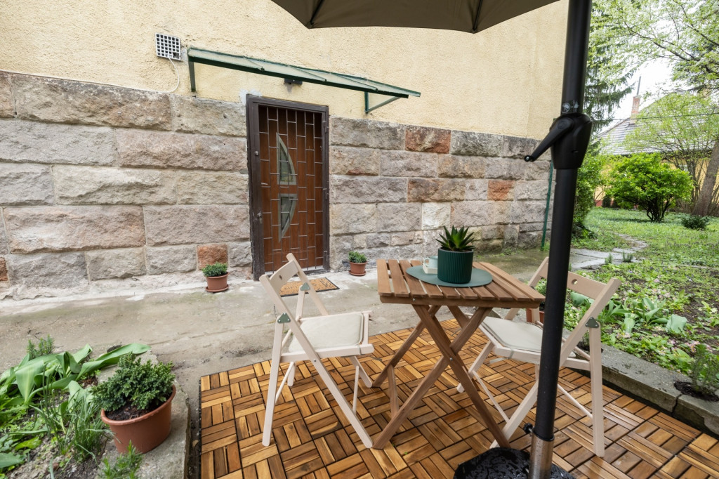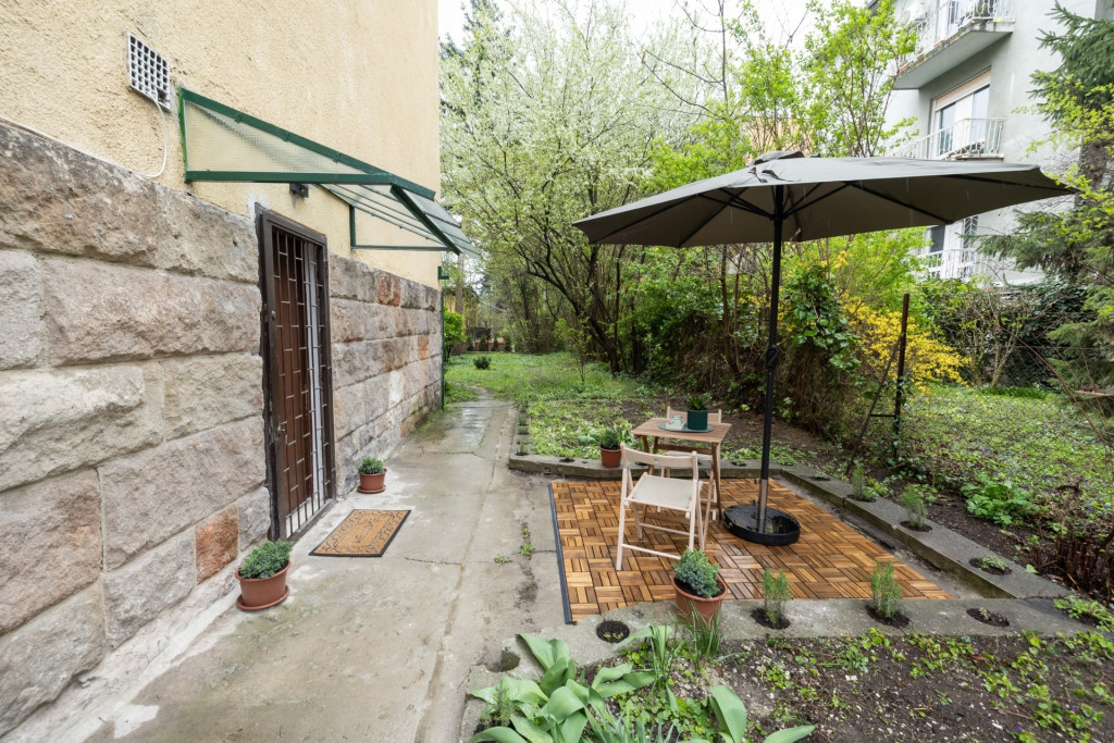 Csendes, zöld környezet, kiváló lokáció: Budagyöngye, villamosok és buszok pár perc sétára.