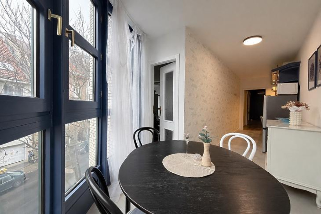 Kiadó a II. kerület közkedvelt részén, Újlakon, a Zsigmond térre néző, jó állapotú lakás egy 90-es években épült, rendezett társasház 3. emeletén. A 65 nm-es ingatlan praktikus elosztású, két külön nyíló szobával, külön konyhával étkezővel, külön WC-vel és fürdőszobával rendelkezik. A lakás kifejezetten világos, sok ablakkal, valamint számos tárolási lehetőséggel. A lakás bútorozott, a ház házközponti fűtéssel rendelkezik, állapota jó, a lakás azonnal költözhető. A bérleti díjon és a közös költségen felül kötelezően fizetendő havi 12.500 Ft, amely tartalmazza a havi egyszeri takarítást.A környék rendkívül kényelmes: a közelben számos élelmiszerbolt, pékség és kisebb üzlet található, a Zsigmond téren pedig rendszeres piac és kávézók várják a lakókat. Sportolási lehetőségek is bőven akadnak, például futópályák, konditermek és a közeli parkokban szabadtéri sportolási lehetőségek. Tömegközlekedés szempontjából is ideális: villamos- és buszmegállók pár perc sétára találhatók, így a belváros gyorsan elérhető.