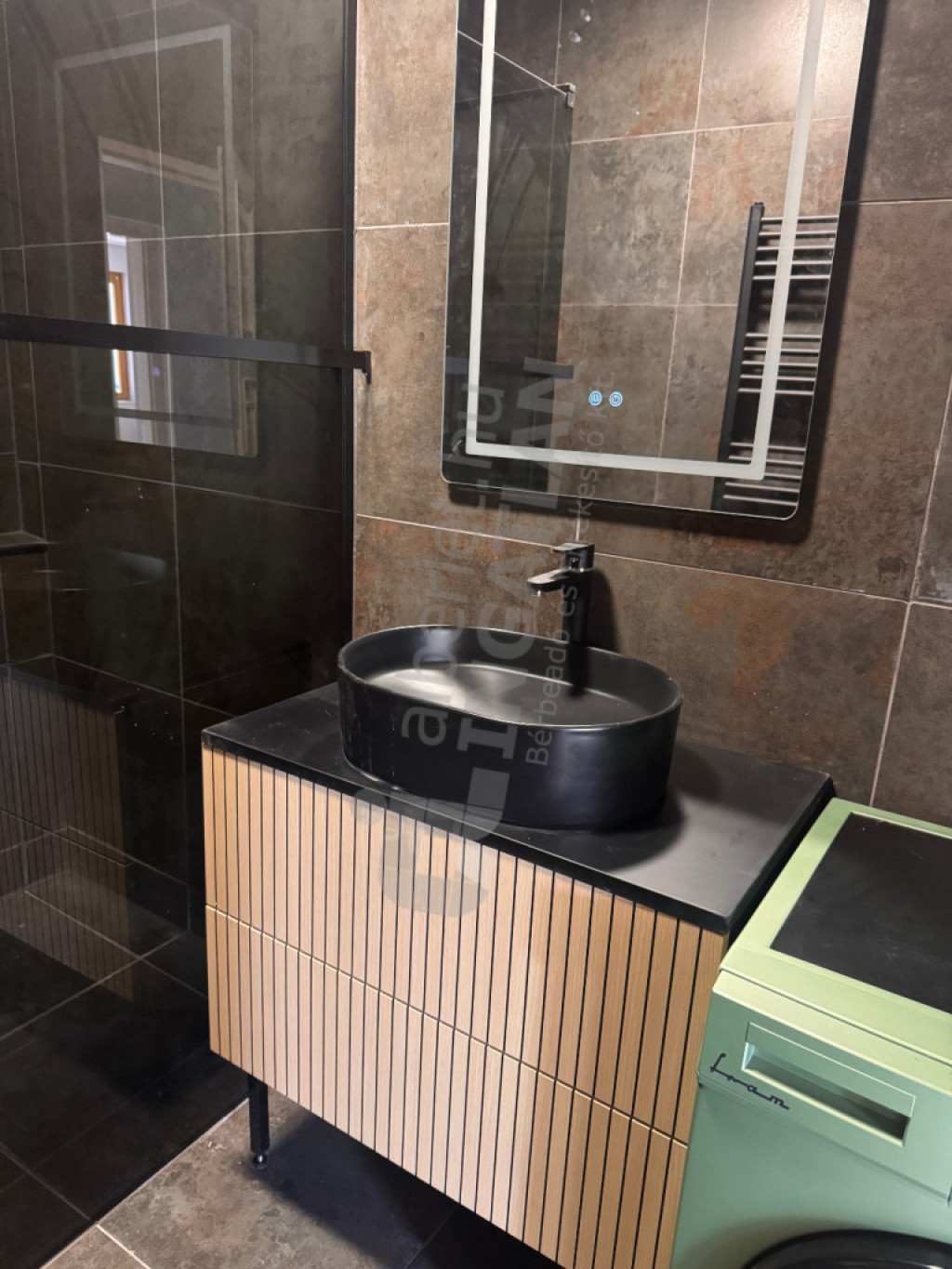 Bútorok nélkül, de gépesítve kerül kiadásra, (mosógép, mosogatógép, hűtő van).