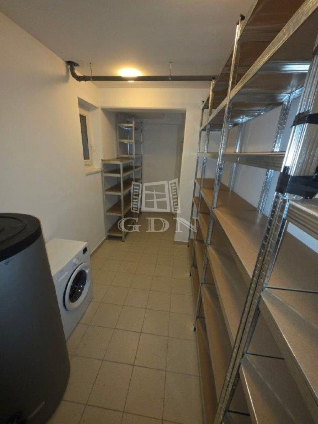 Az ingatlant bútorozatlanul kiadó, kivéve: konyhabútor + beépített konyhagépek (hűtő, fagyasztó, mosogatógép, mikrohullámú sütő, sütő, kerámialap, szagelszívó), mosdópultok, klímák, lámpák, riasztóberendezés, mosógép és polcrendszer a pinceszinten stb.