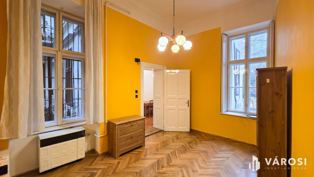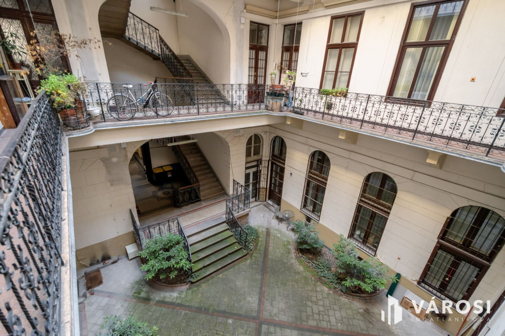 A lakás ablakai a belső és a hátsó udvarra néznek, így a körút forgalmából semmi sem hallatszik be.