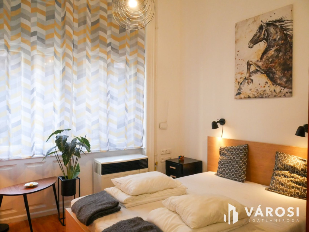 Kedves, stílusos lakás kiadó a Nagycsarnoknál.Kiadó egy 34 m2-es, kitűnő állapotban lévő lakás az Erkel utcában. Az egy szobás amerikai konyhás apartman bútorozott és gépiesített. A háló világos, melyet egy vidám könyves szekrény választ el az étkezőtől, a konyha modern és jól felszerelt, a fürdőszobában hatalmas tükör és zuhanyzó található. Van beszerelve hűtőszekrény, mosógép, klíma, mégis alacsony fenntartású. Déli tájolású, így reggelente szépen besüt a nap.