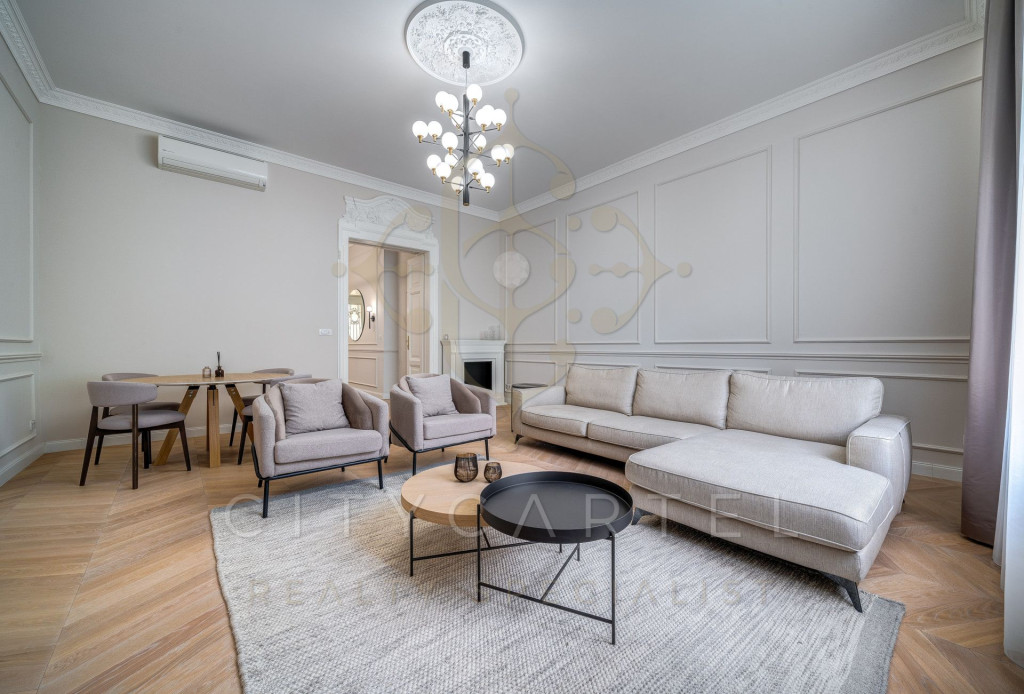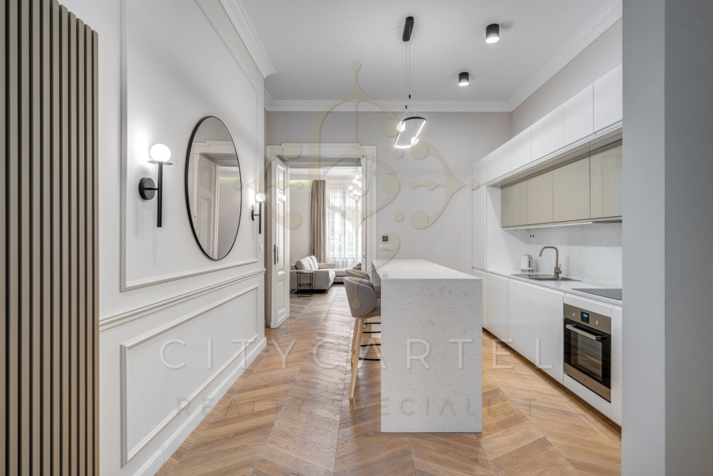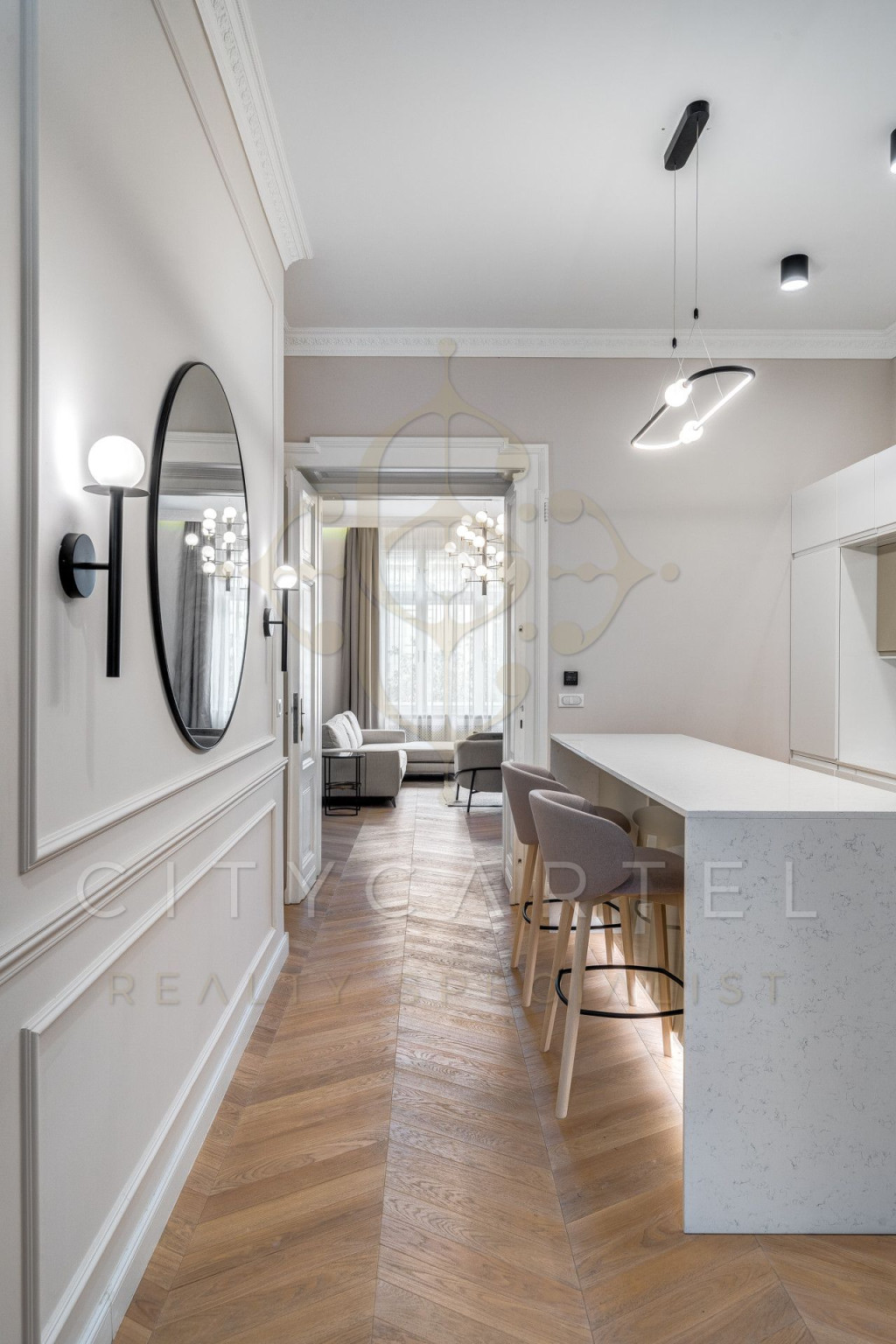 Budapest egyik legkeresettebb, történelmi belvárosi utcájában kínáljuk bérbeadásra ezt a 105 nm-es, teljes körűen felújított, luxus kivitelű lakást, amely minden részletében az igényességet és az időtálló eleganciát képviseli.