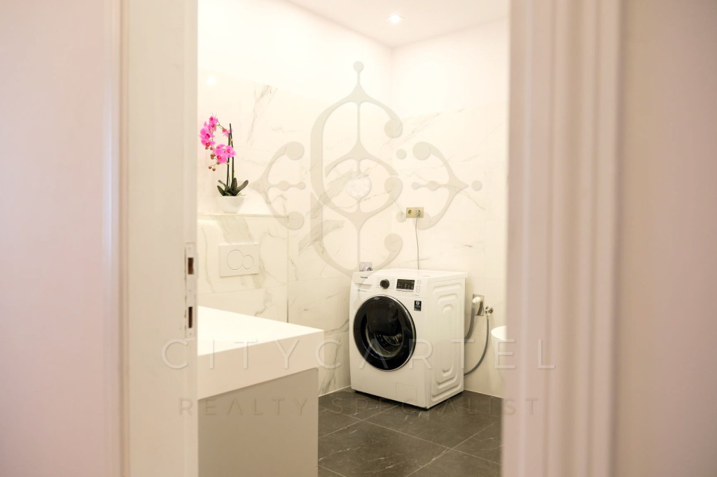 - Prémium konyha beépített gépekkel (sütő, főzőlap, mosogatógép, hűtő)
