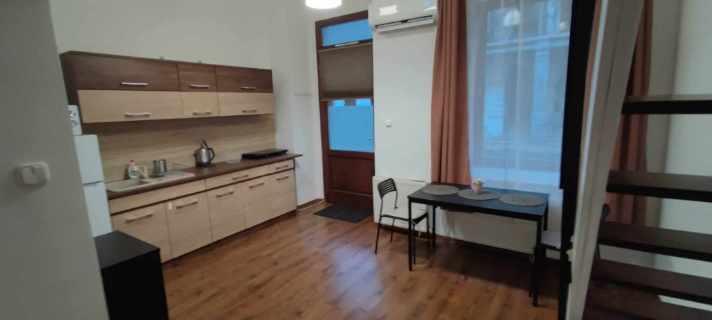 A VI. kerületi ANDRÁSSY ÚTON, a Kodály köröndtől mindössze 1 perc sétára kiadó egy 26 m² alapterületű, további 11 m²-es ÁLLÓ GALÉRIÁVAL rendelkező, praktikus kislakás. Az ingatlan földszinti elhelyezkedésű, ablakai csendes belső udvarra néznek, így a központi lokáció ellenére is nyugodt otthont biztosít.A lakás TELJESEN BÚTOROZOTT ÉS RÉSZBEN GÉPESÍTETT: hűtő, mosógép, mikrohullámú sütő és főzőlap rendelkezésre áll. A kellemes hőmérsékletért és a gazdaságos fenntartásért egy modern HŰTŐ-FŰTŐ KLÍMA felel. A bérleti díjon felül a rezsi fix 50.000 Ft, amely TARTALMAZZA a vizet, villanyt, közös költséget, valamint a TV és internet előfizetést is, így nincsenek rejtett költségek.