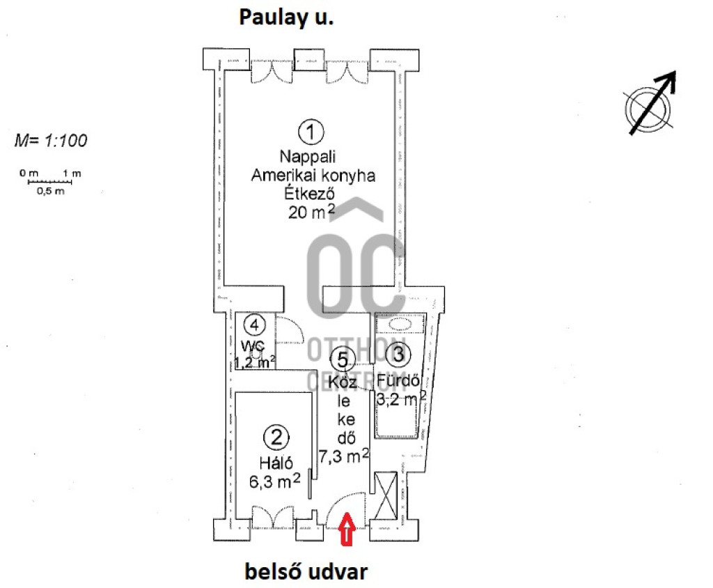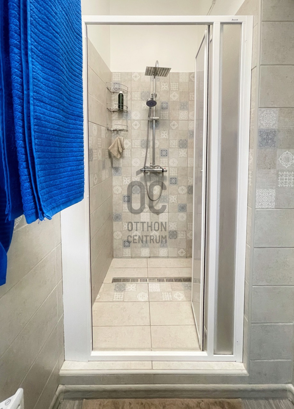 Amerikai konyhás nappalija utcára néz, hálószobája csendes belső udvarra. Zuhanyzós fürdőszobája van, külön wc-vel.