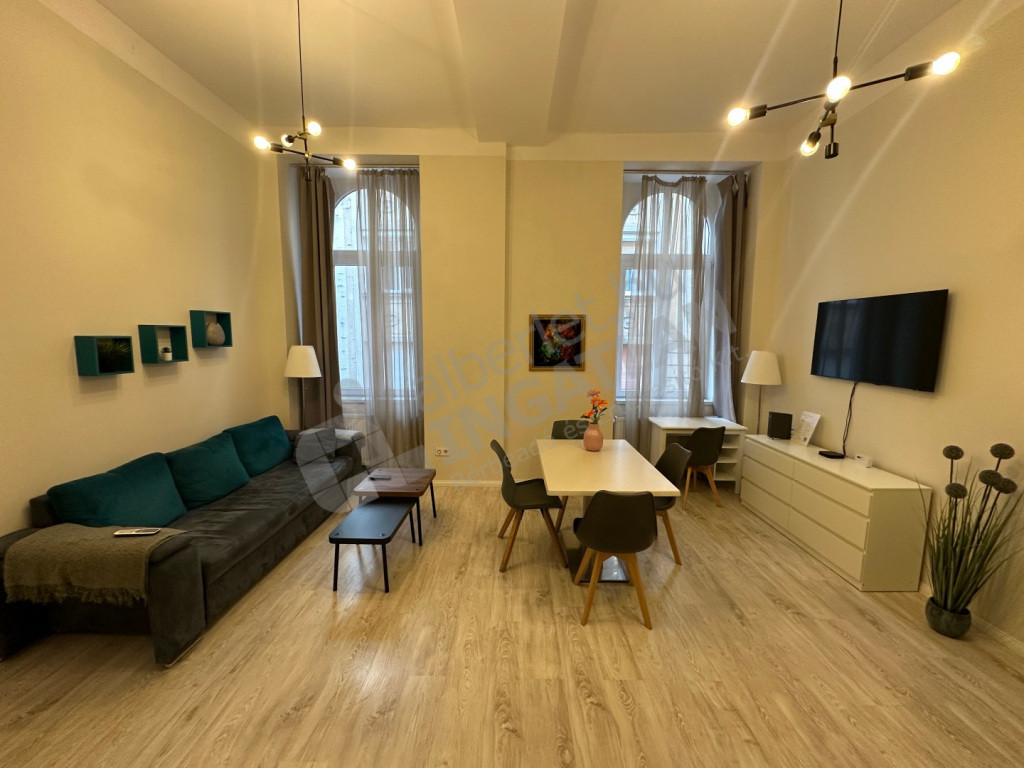 Dohány utcában kiadó egy tágas, két hálószoba plusz nappalis, berendezett lakás.Két méretes hálószoba, tágas nappali, konyha az előtérben, külön fürdő és WC.