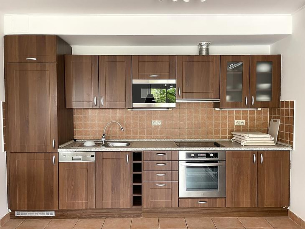 A lakás 62,5 m² alapterületű, amelyet egy 8 m²-es terasz egészít ki. A nagy üvegfelületeknek köszönhetően a lakás egész nap világos, napfényes, igazán kellemes atmoszférát biztosít. Az ingatlan frissen felújított, a konyha teljesen gépesített, beépített készülékekkel és mosogatógéppel felszerelt. Az előszobában, a közlekedőben és minden szobában nagy méretű beépített gardróbszekrények biztosítják a bőséges tárolóhelyet.