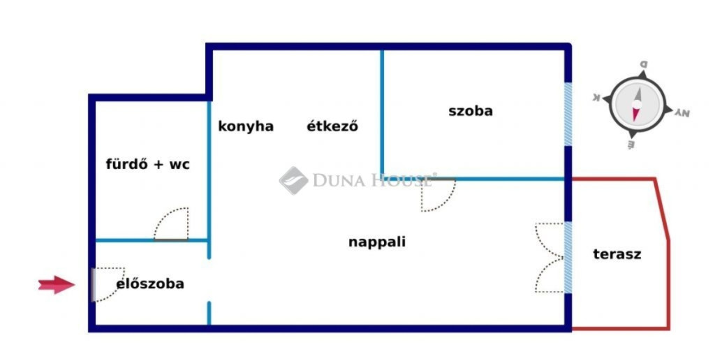 Az elrendezés praktikus és élhető: amerikai konyhás nappali, külön hálószoba, valamint fürdőszoba áll rendelkezésre. A lakás bútorozott, mind a nappaliban, mind a hálóban kényelmes, ággyá alakítható kanapé található, így a tér rugalmasan használható.