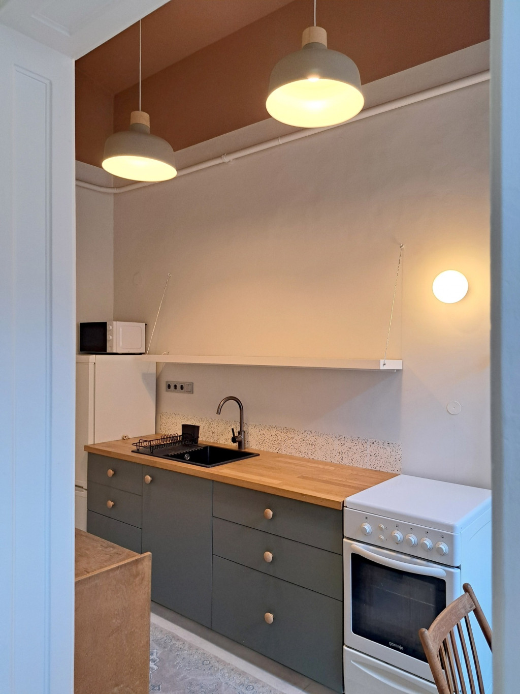 An apartment for rent on József Boulevard in District VIII, in a relatively new building: a renovated 47 m² flat with a living room + 1 bedroom, fully equipped (appliances included) and partially furnished.