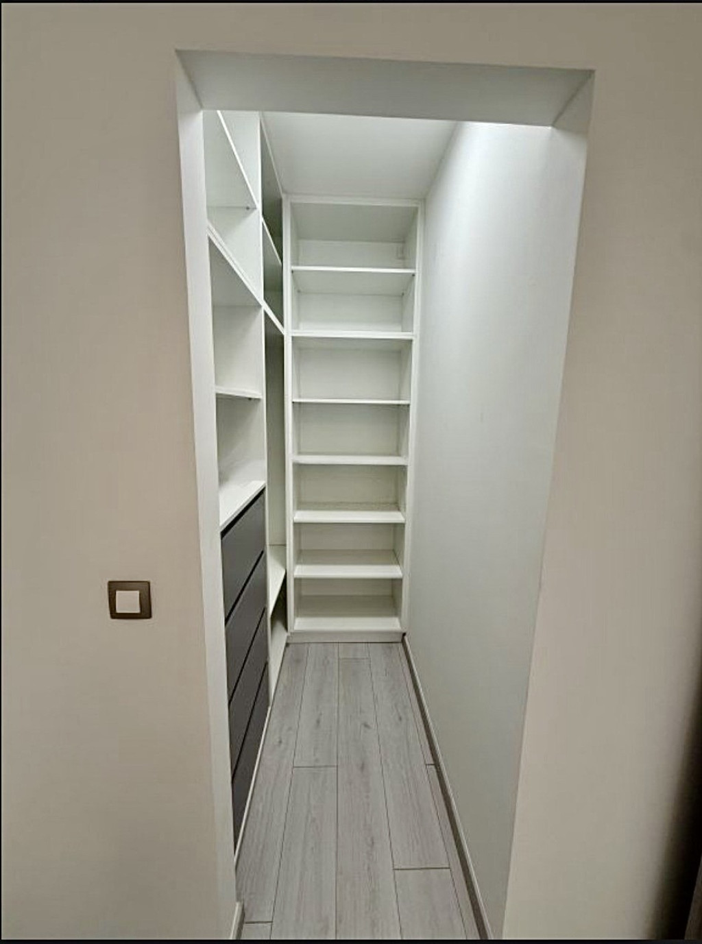 The apartment features a spacious living room, plus 3 separate bedrooms, a built-in kitchen, and a walk-in wardrobe, along with additional storage options.