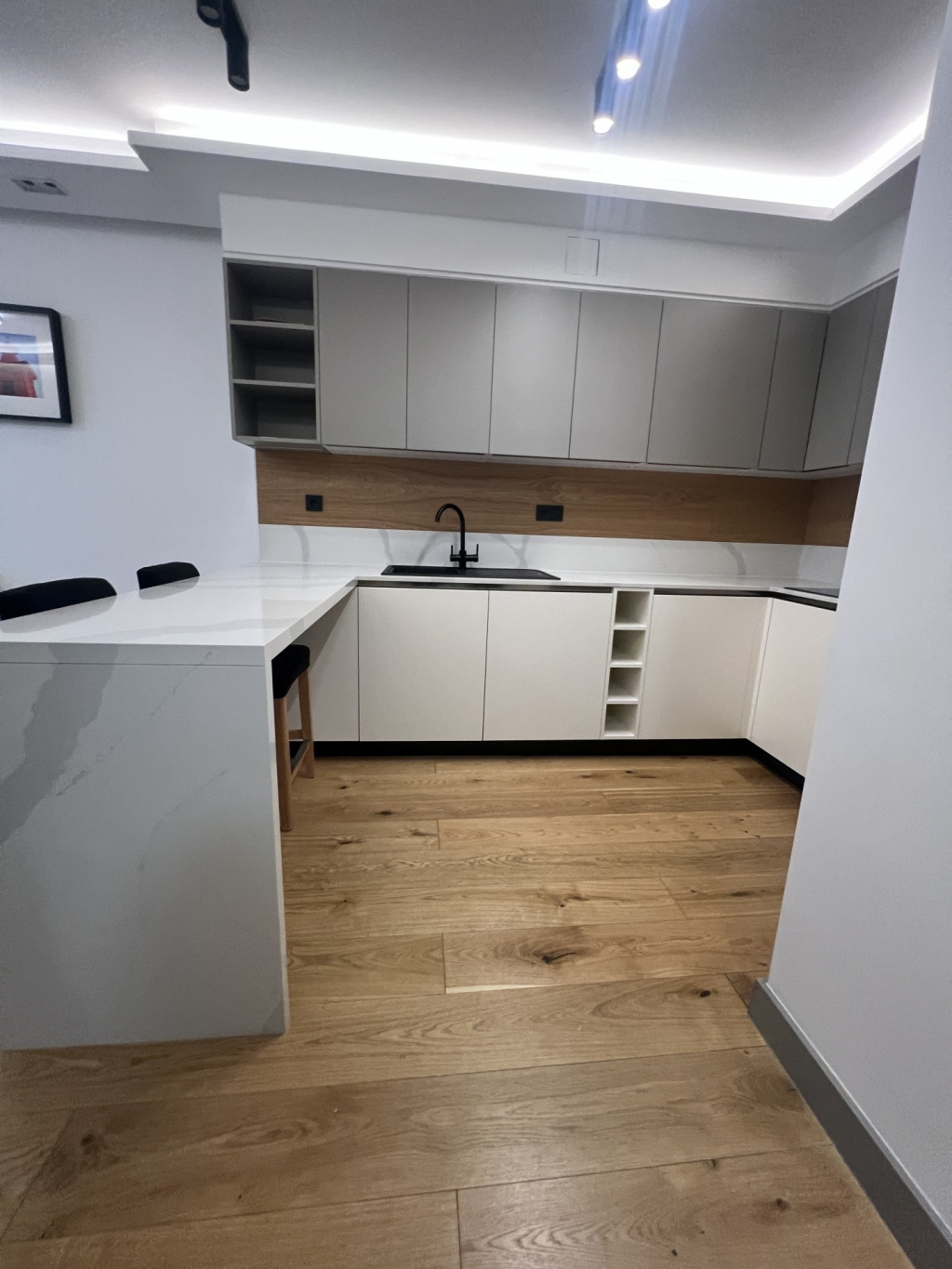 Prémium konyhabútor, fapadló, minőségi szaniterek és kerámia burkolatok, rejtett világítás... stb.