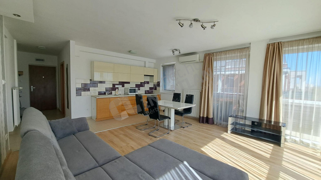 - 25 nm-es amerikai konyhás nappali, amelyről északi és keleti irányban erkély (11nm) van, légkondicionált