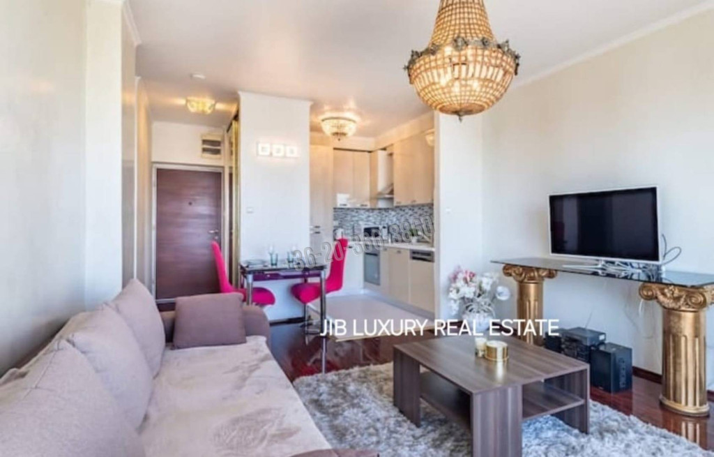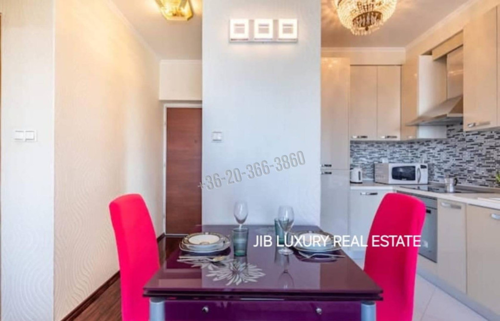 Kivitelezés: A lakás belső terei exkluzív bútorzattal, prémium anyaghasználattal és teljes körű gépesítéssel lettek kialakítva, kielégítve a legigényesebb bérlői elvárásokat is.
