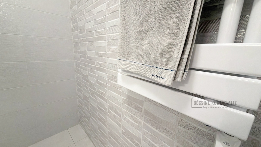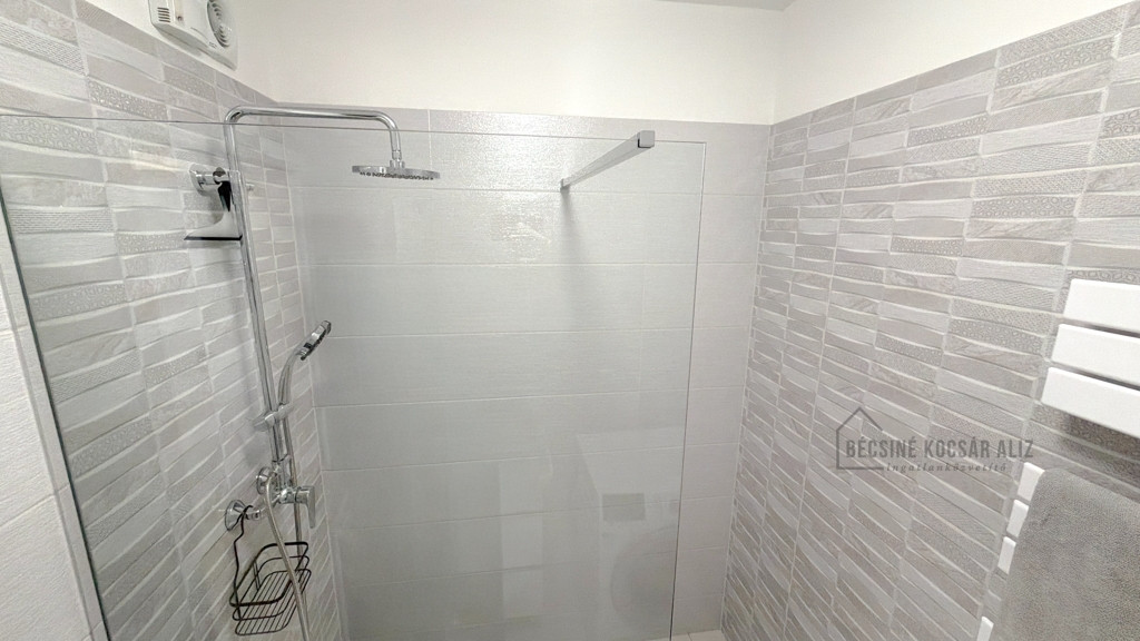 A liftes kialakításnak és a sík burkolatoknak köszönhetően a lakás kényelmesen megközelíthető, a walk-in zuhany pedig tovább növeli a komfortérzetet, így mozgásukban korlátozott bérlők számára is megfontolandó választás lehet.