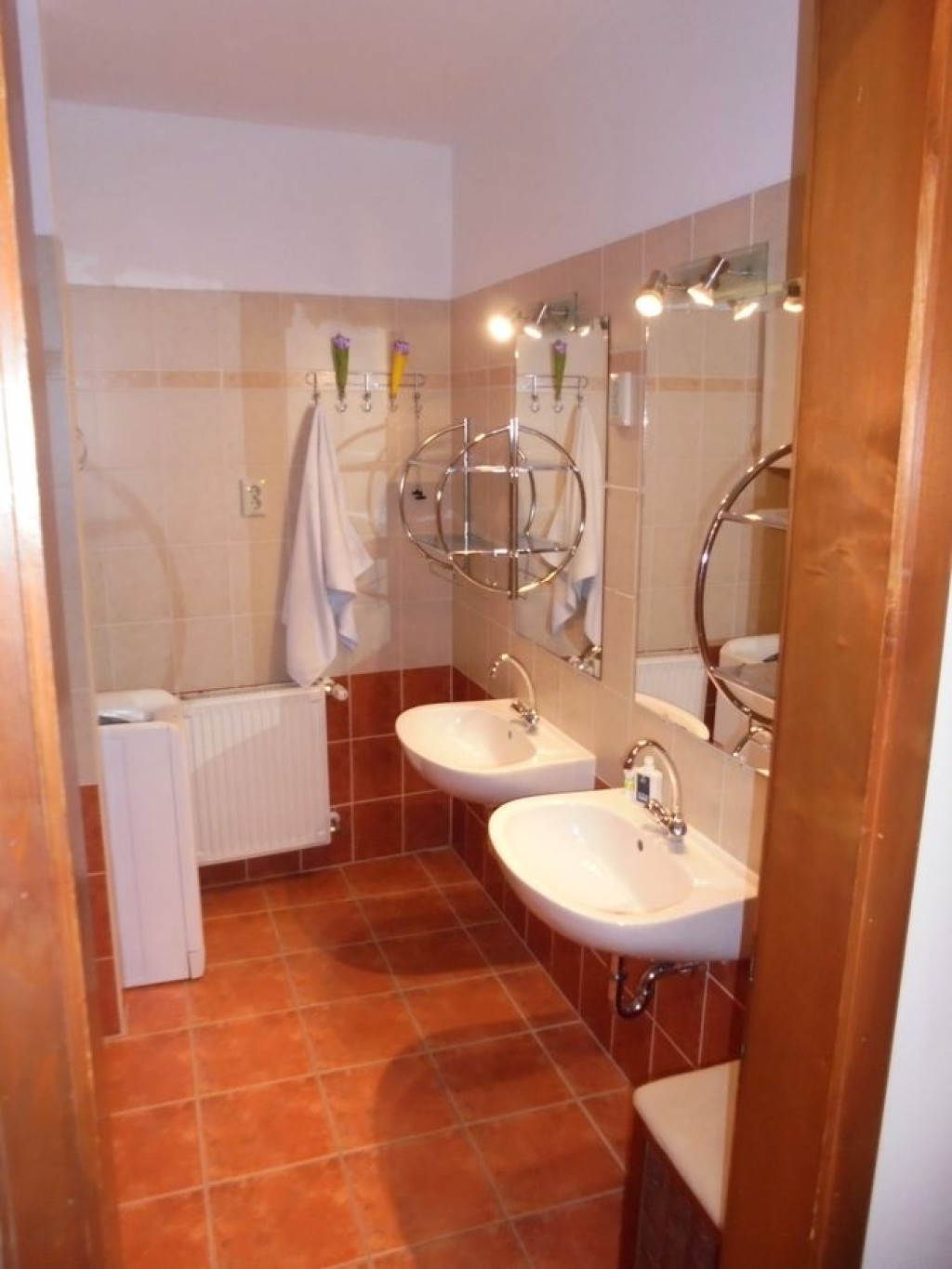 - a kádas kialakítású, két mosdókagylós, mosógéppel ellátott fürdőszoba és a WC külön légtérben találhatóak