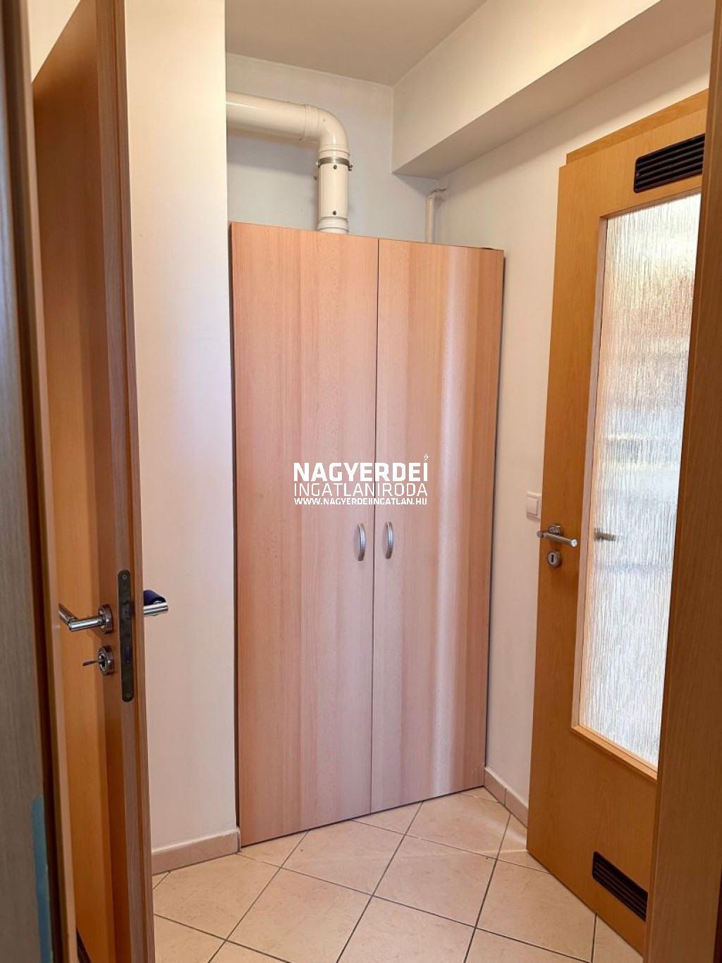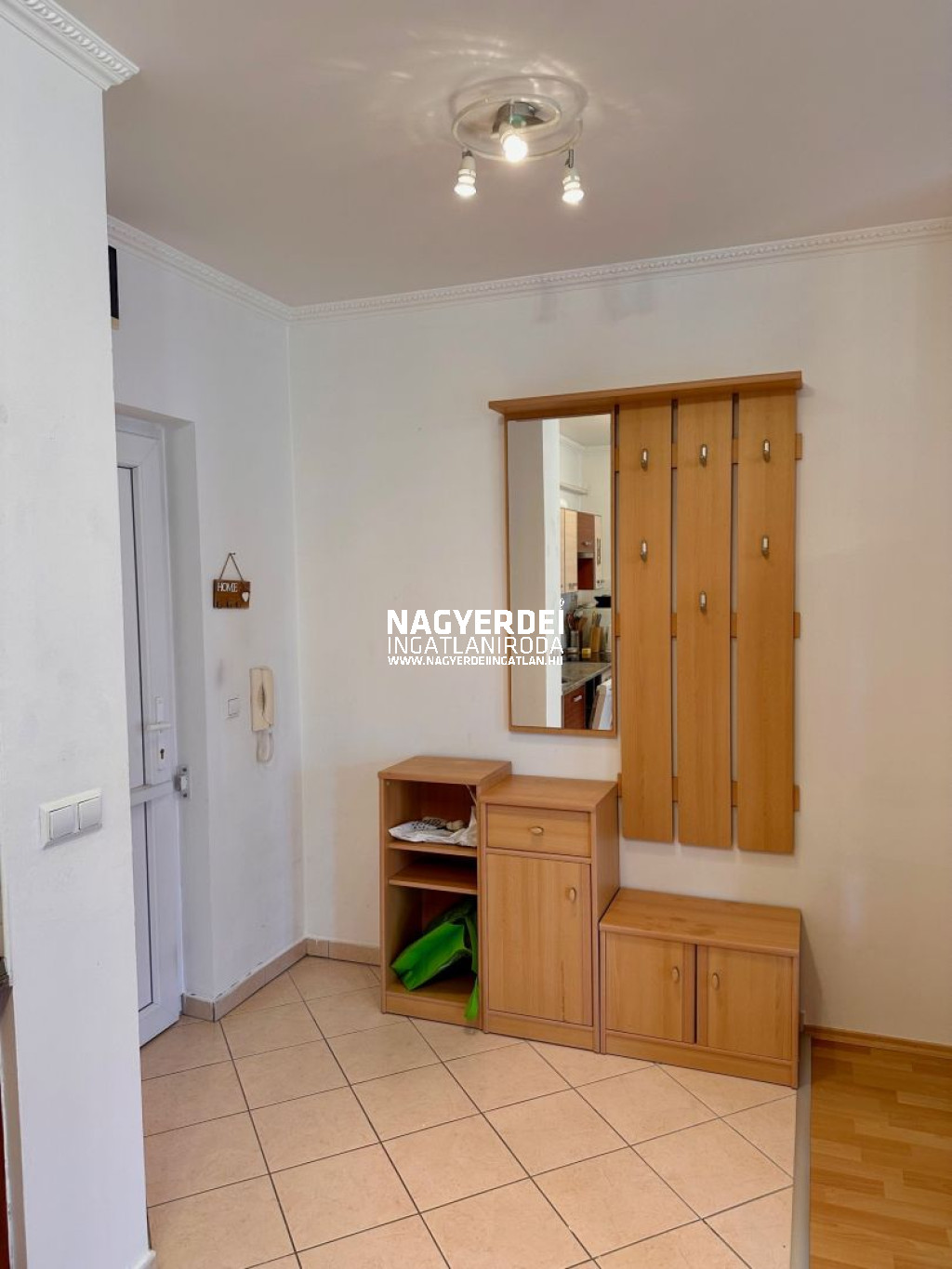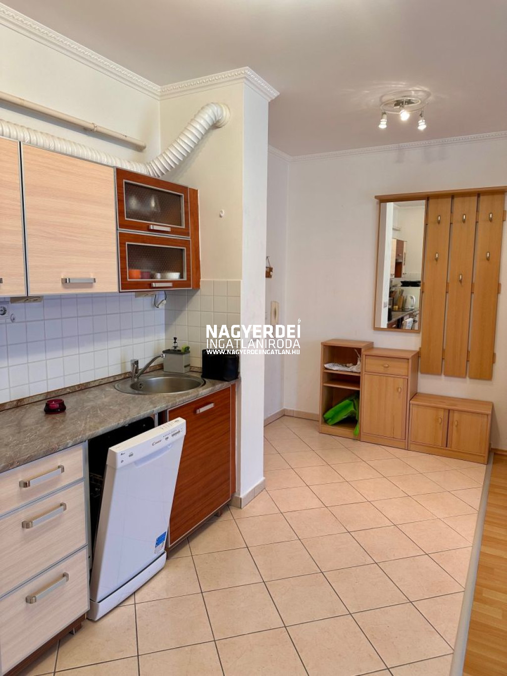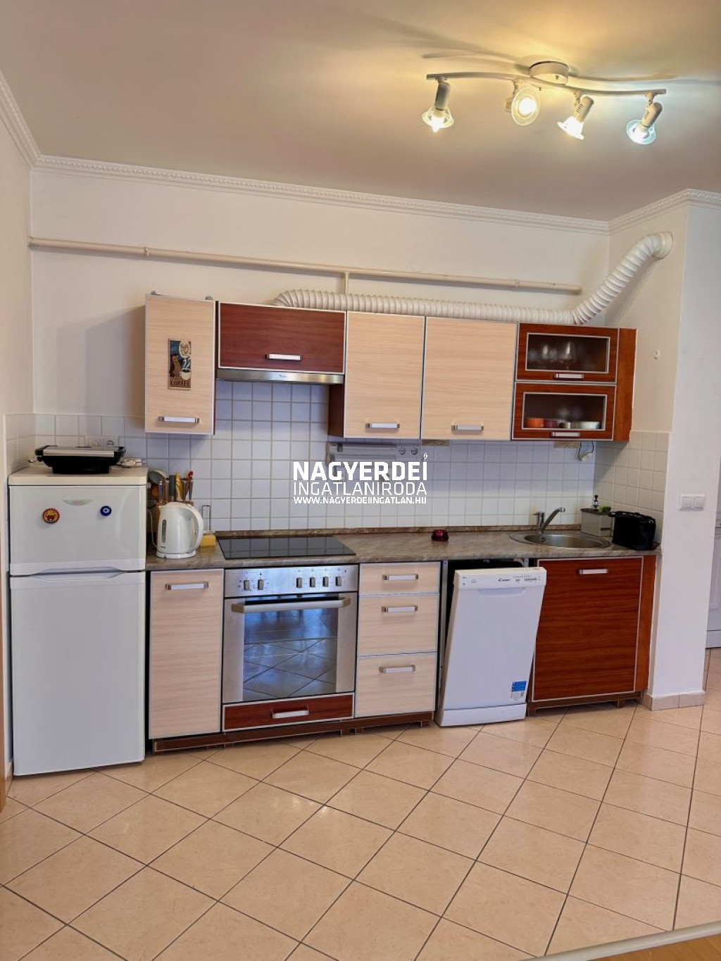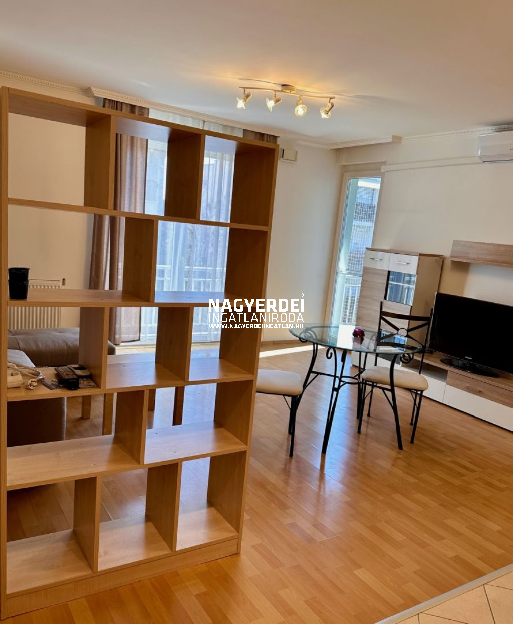 Főépület szomszédságában található 1 szoba + amerikai konyha nappalis lakás, liftes épületben, a 3. emeleten kiadó. Egy hálószoba, fürdőszoba, amerikai konyhás nappali és egy erkély található. A lakás teljes körűen bútorozott, klasszikus, letisztult design került kialakításra. Emellett teljesen gépesített; a fürdőben mosógép, a konyhában mikró, hűtő, mosogatógép és sütő. A nappaliban Smart TV és légkondicionáló találhatók. Parkolásra az udvarban van lehetőség, aminek díját a bérleti díj tartalmazza. Kisállattartás és dohányzás nem megengedettek. Kényelmes lehetőség pároknak vagy 1 főnek.Azonnal elérhető két havi kaució ellenében.